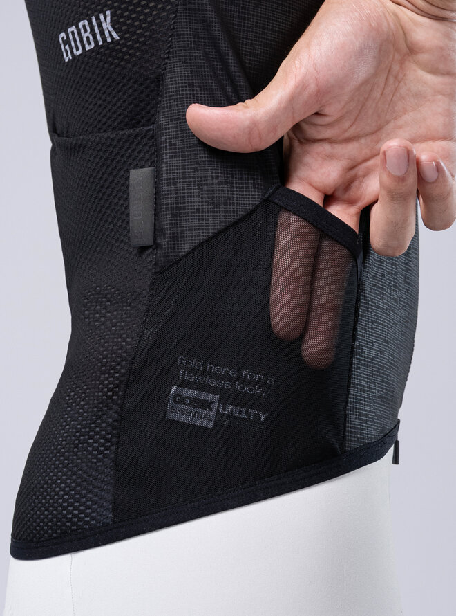 Nowy zoptymalizowany krój poprawia dopasowanie, zapewniając idealne dopasowanie do koszulki bez dyskomfortu i ograniczeń. Otwory z tyłu zostały przeprojektowane, aby umożliwić szybki i wygodny dostęp do kieszeni koszulki nawet podczas ruchu.