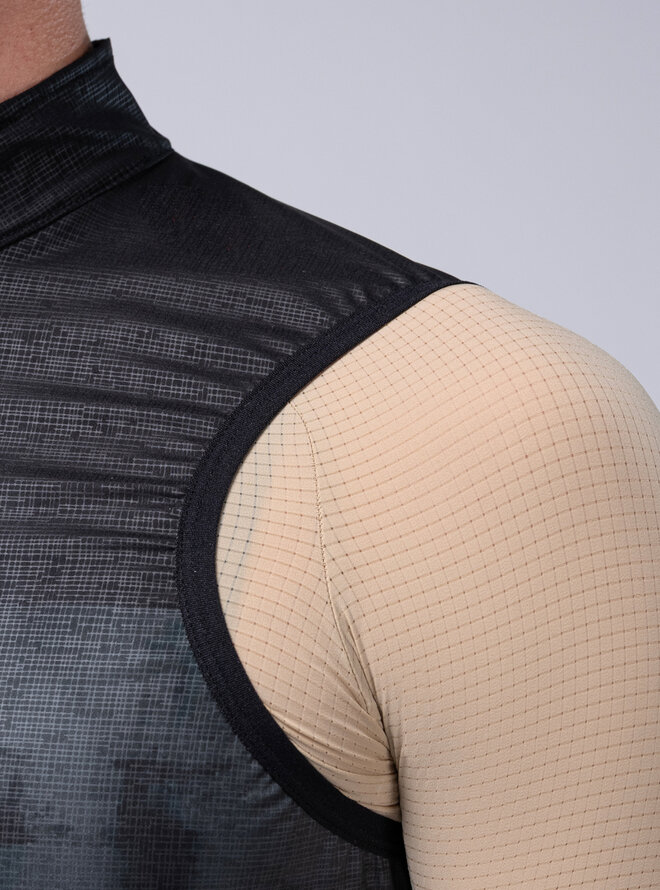 Zapewnia skuteczną ochronę przed wiatrem w okolicy klatki piersiowej i tułowia, co jest szczególnie przydatne we wczesnych godzinach porannych lub podczas długich zjazdów. Idealny, wszechstronny towarzysz, który rozszerza zakres temperatur długich koszulek i utrzymuje temperaturę ciała w zmieniających się warunkach.
