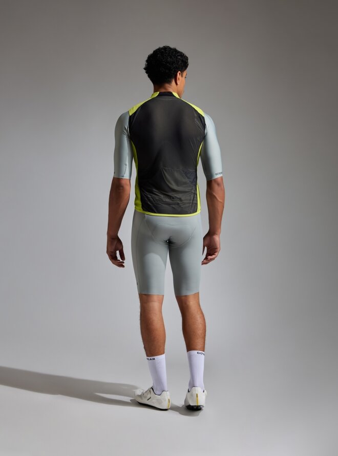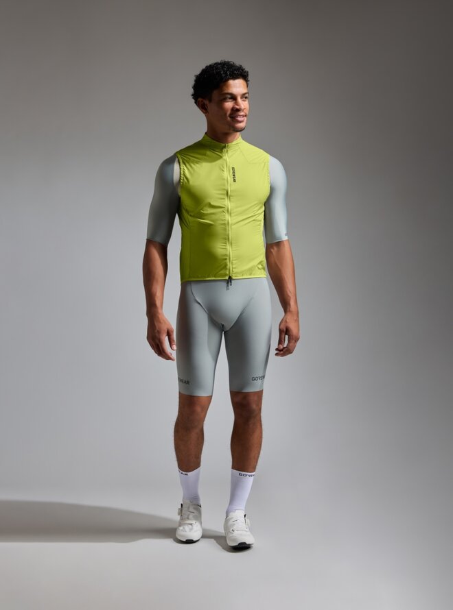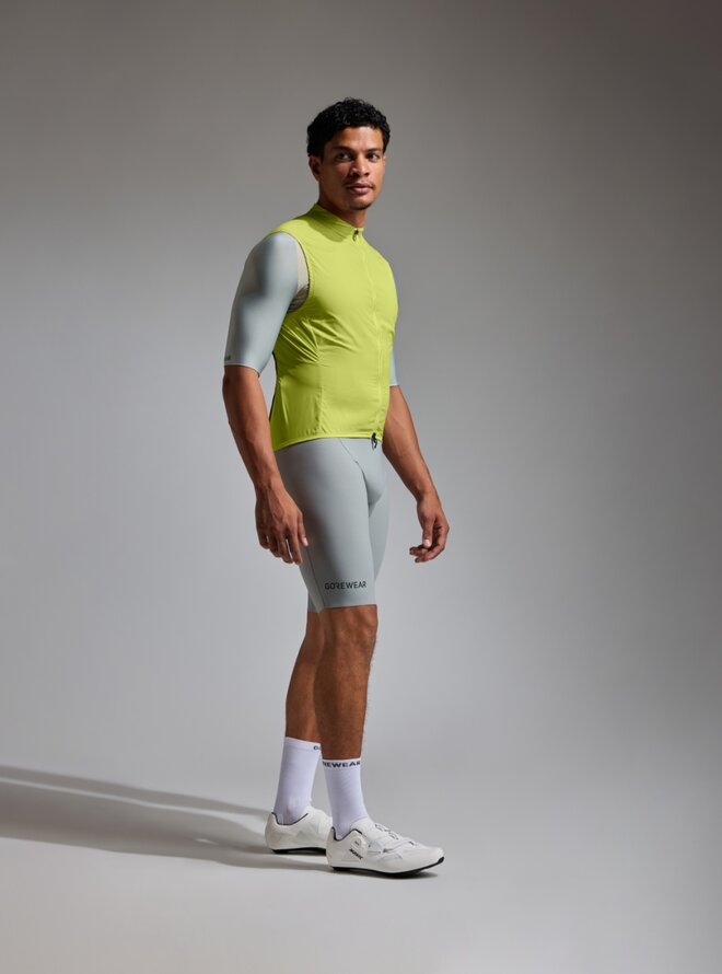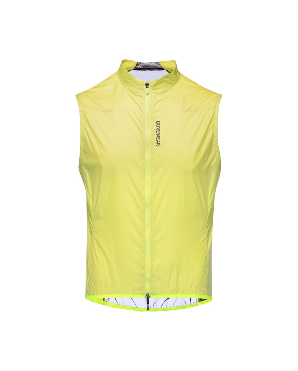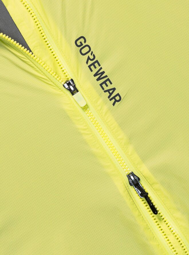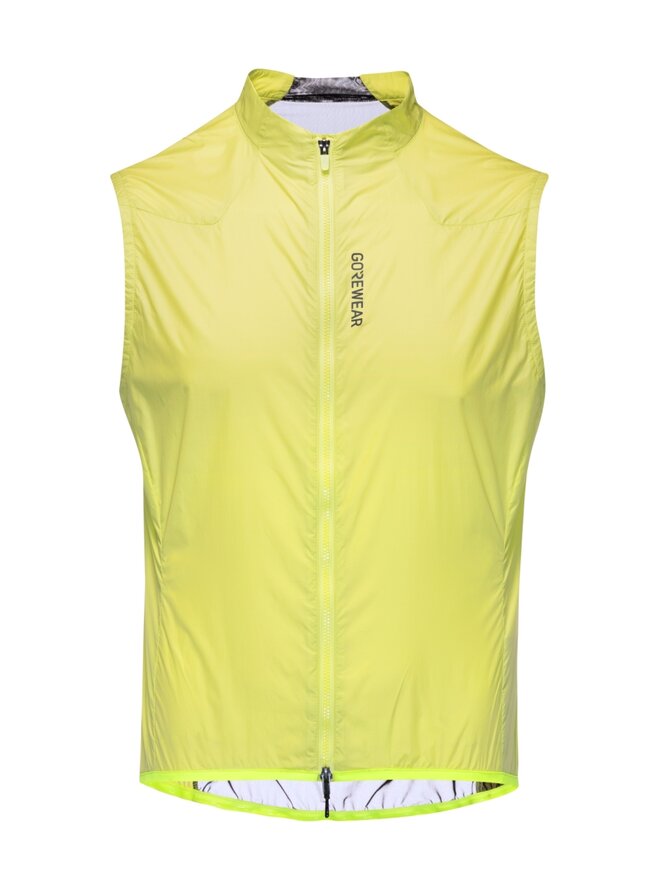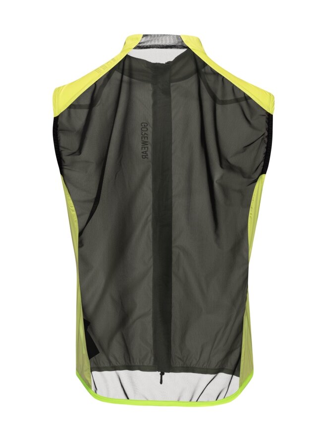 Przednia część kamizelki skutecznie chroni środek ciała przed wiatrem dzięki wysokiej jakości wykończeniu powierzchni, podczas gdy tylny panel z siateczki zapewnia doskonałą oddychalność i dopasowany krój. Wysoki kołnierz zapewnia dodatkową ochronę przed chłodem i wiatrem.