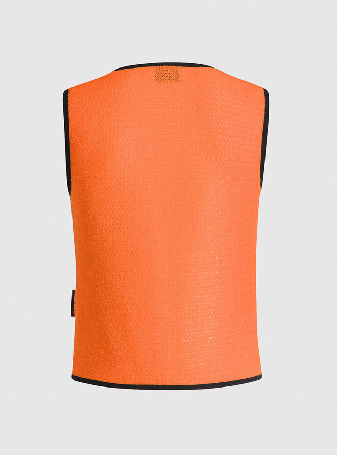 Specjalna dwuczęściowa konstrukcja dopasowuje się do ciała bez ucisku i tarcia, dzięki czemu kamizelkę można nosić bezpośrednio na skórze, na cienkiej bieliźnie lub pod warstwą wiatroodporną. Materiał ma niską objętość i szybko schnie, co czyni go niezawodną bazą przy zmiennej pogodzie, także w okresie, gdy temperatury oscylują wokół zera. Przedni zamek od światowego producenta YKK® umożliwia szybkie zakładanie i regulację ciepła podczas jazdy.