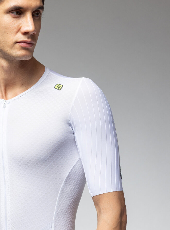 Z przodu kombinezon R-EV1 Eagle posiada całkowicie rozpięty zamek błyskawiczny, który umożliwia wygodne ubieranie. Z tyłu znajduje się podwójna kieszeń, w której możesz schować wszystko, czego będziesz potrzebować podczas wyścigów. Kombinezon został opracowany z naciskiem na wspieranie wydajności, dlatego jest wyposażony w specjalną strukturę 3D, która zapewnia doskonałe wsparcie mięśni podczas występu dzięki doskonale dopasowanej kompresji. Jego właściwości aerodynamiczne są najlepsze, jakie można znaleźć w świecie kolarstwa, połączenie ergonomicznego kroju, rękawów bez obszycia z aerodynamicznymi dodatkami sprawia, że kombinezon R-EV1 Eagle to prawdziwa broń na czas.