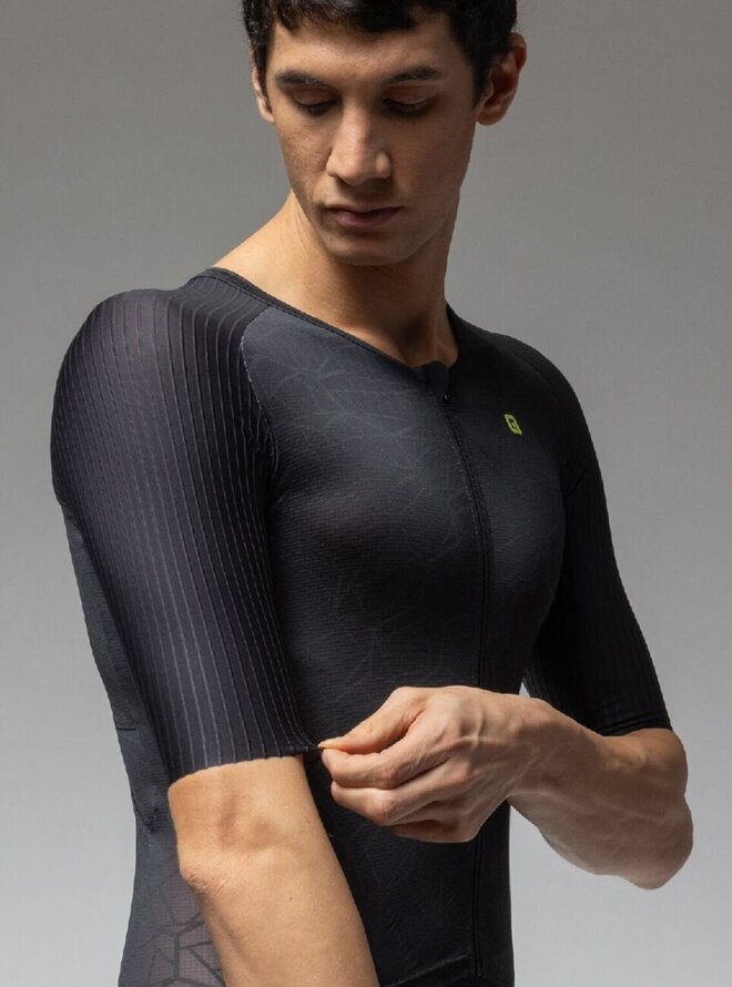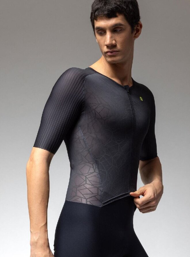 Skinsuit Focus to zaawansowany technologicznie kombinezon TRI, zaprojektowany z myślą o zapewnieniu maksymalnej wydajności i komfortu podczas zastosowań wyścigowych. Jest to idealny wybór dla sportowców chcących wykorzystać wszystkie atuty w walce o czas i efektywność.Top wykonany jest z lekkich i wysoce oddychających materiałów Microforato Light, które pomagają utrzymać skórę suchą i świeżą nawet przy dużej intensywności ćwiczeń. Zastosowany materiał jest zoptymalizowany pod kątem skutecznego odprowadzania wilgoci, zmniejszając w ten sposób ryzyko podrażnień skóry i znacznie zwiększając ogólny komfort podczas wyścigu.