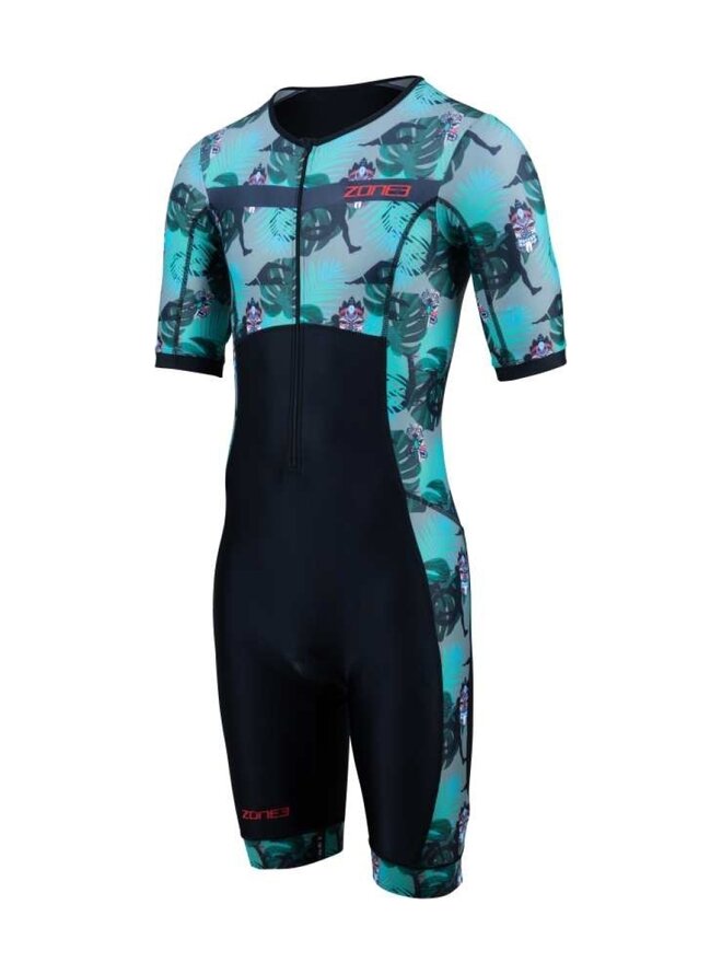 Męski kombinezon triathlonowy Zone3 Activate+ z krótkim rękawem to wysokiej jakości kombinezon triathlonowy z krótkim rękawem, przeznaczony zarówno do użytku treningowego, jak i wyścigowego. Ten jednoczęściowy kombinezon triathlonowy łączy w sobie wygodę, aerodynamikę i nowoczesny design, zapewniając jednocześnie maksymalną swobodę ruchów podczas pływania, jazdy na rowerze i biegania. Ergonomiczny krój zapewnia dokładne i wygodne dopasowanie, a tylne i boczne panele z lekkiej siateczki poprawiają oddychalność i odprowadzanie potu. Kombinezon Tri-Lite wyposażony jest we wkładkę Tri-Lite, która zapewnia ochronę podczas jazdy na rowerze, szybko schnie i nie utrudnia pływania czy biegania. Elastyczne silikonowe ściągacze na nogawkach zapewniają stabilne dopasowanie spodni bez przesuwania się, a płaskie szwy minimalizują tarcie i podrażnienia skóry.Szczegóły