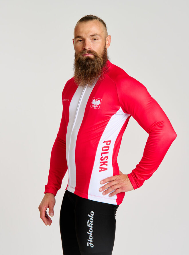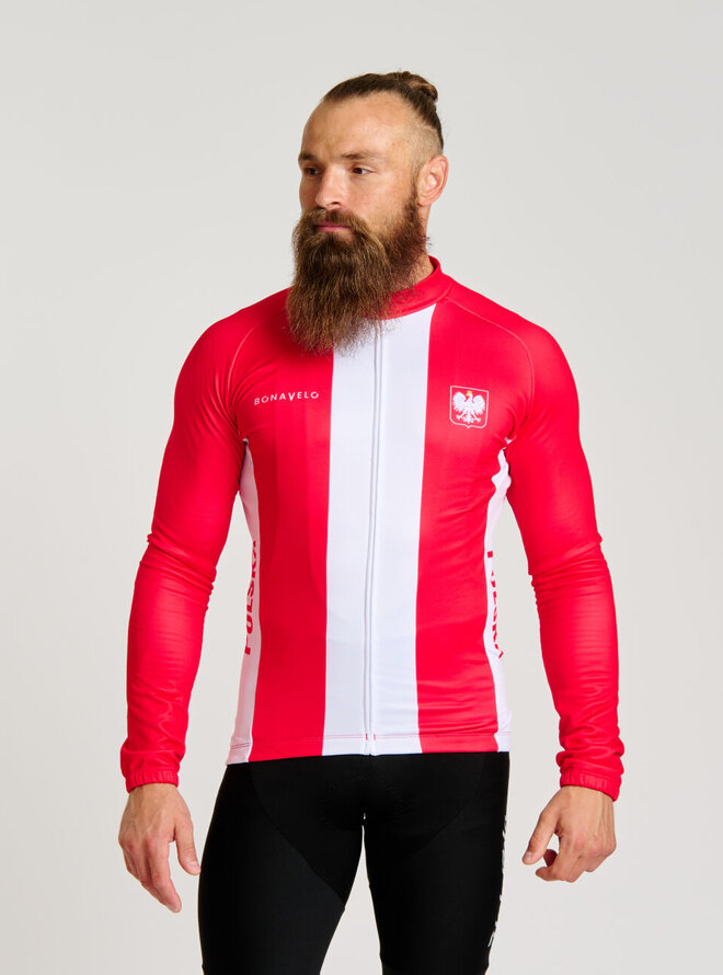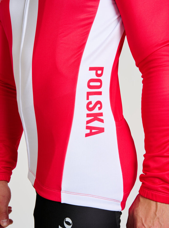 Zimowa koszulka kolarska z długim rękawem - POLAND WINTER - czerwony/biały