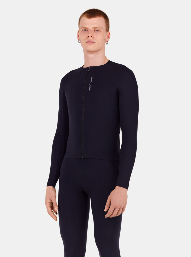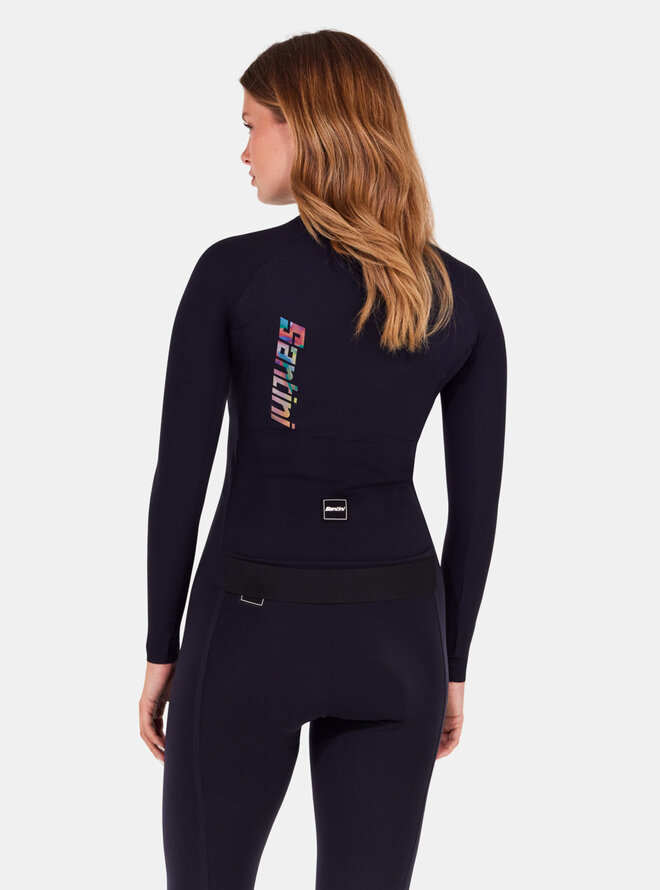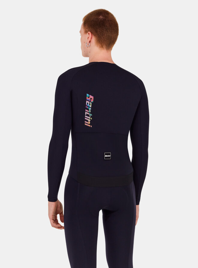 SANTINI Unico to przejrzysty design i wysoka wydajność w jednym. Jego minimalistyczny wygląd w eleganckiej czerni uzupełnia kolorowe logo z tyłu – dyskretne, ale pomysłowe. Przód w stylu kimona i raglanowy krój z tyłu naśladują naturalny ruch ramion, zapewniając tym samym doskonałą ergonomię i swobodę bez zbędnych fałd.