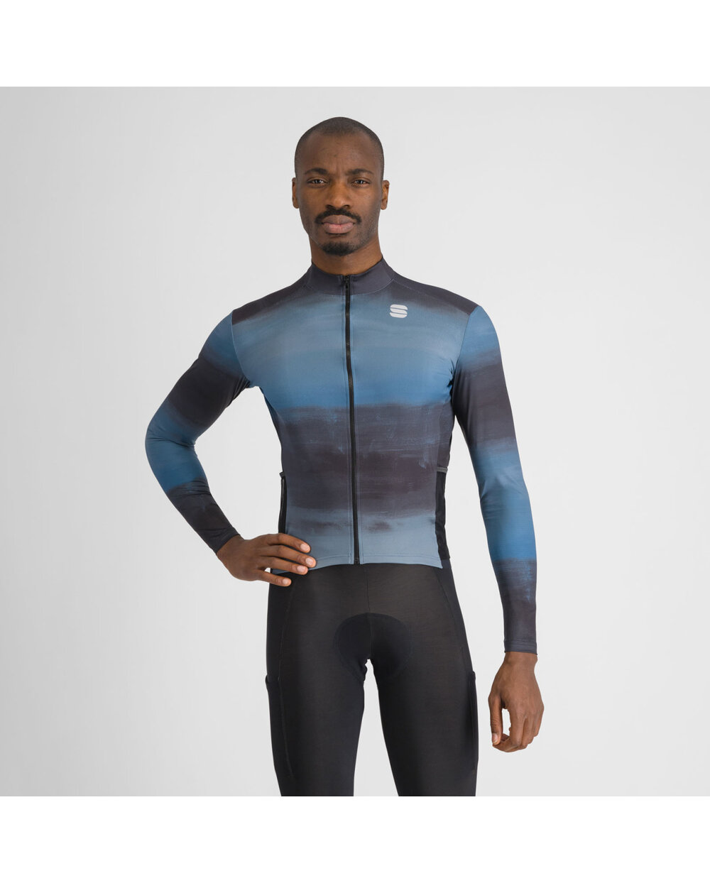 Zimowa koszulka kolarska z długim rękawem - FLOW SUPERGIARA THERMAL - niebieski