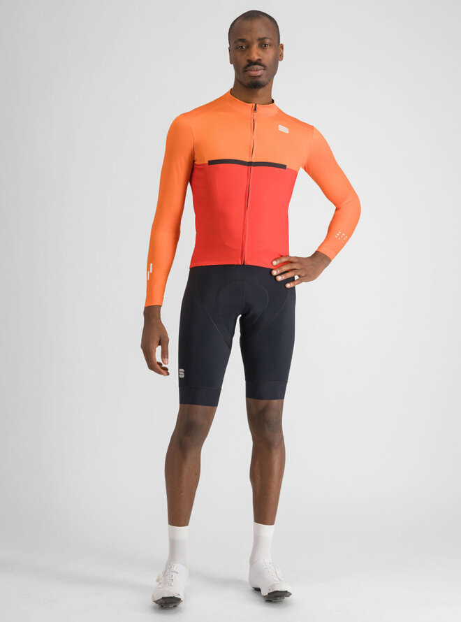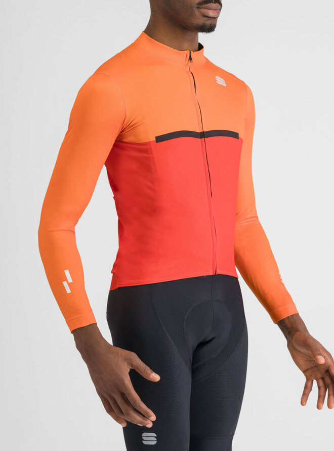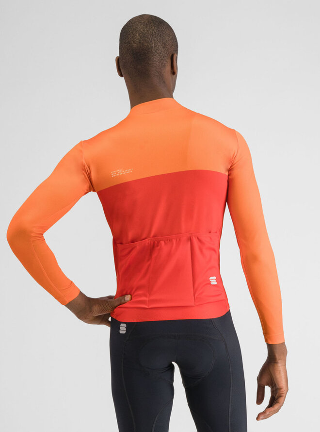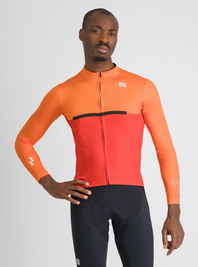 Zimowa koszulka kolarska z długim rękawem - PISTA THERMAL - czerwony/pomarańczowy