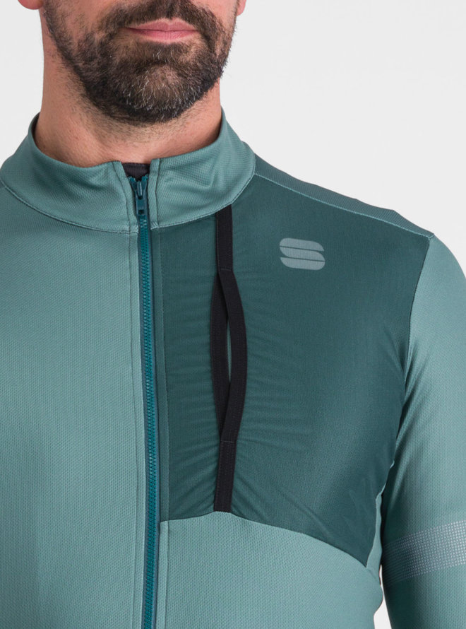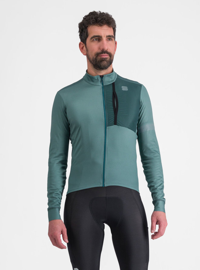 SuperGiara Thermal nadaje się do długichý przejażdżek wýokresie przejściowymý. Średniej wagi poliestrowy materiałáz drobno gniecionym torsem zapewnia ciepło i wystarczającą oddychalność na poziomie. Trzy kieszenie z tyłu i jedna z przodu pozwalają schować niezbędne drobiazgi.