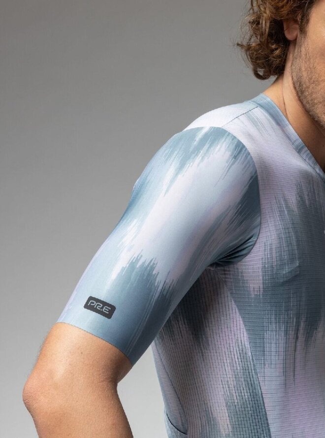 Każda część koszulki PR-E Argon została zaprojektowana tak, aby maksymalnie wykorzystać każdy zastosowany materiał. Wykonany jest z tkaniny Rap Dry Carbon z przeplatanymi włóknami węglowymi, ultralekkiej tkaniny Micro Aero zapewniającej cyrkulację powietrza i siateczki Piuma pod pachami zapewniającej oddychalność, co zapewnia najwyższy komfort i waży zaledwie 100 gramów. System S-Stability w dolnej przedniej części koszulki gwarantuje optymalne dopasowanie. Wszyte rękawy o kroju bez podszewki.