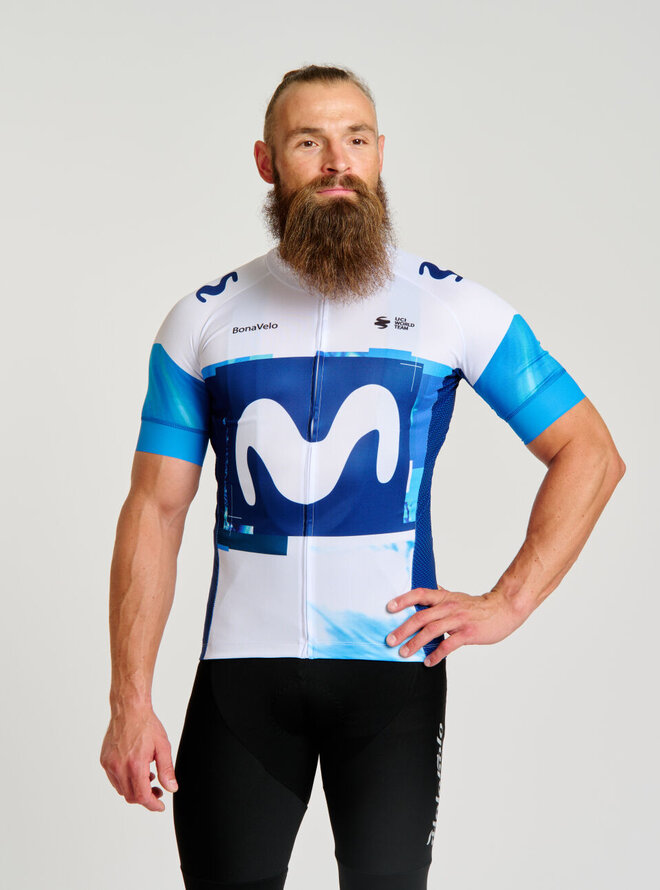 Koszulka kolarska z krótkim rękawem - MOVISTAR 2025 - biały/niebieski