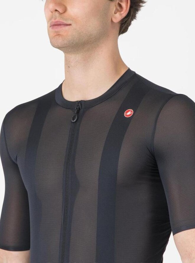 Koszulka Superleggera A/C jest tak lekka, że ledwo zauważysz, że ją masz na sobie.Materiał siatkowy Oltre o gramaturze zaledwie 70g/m2.