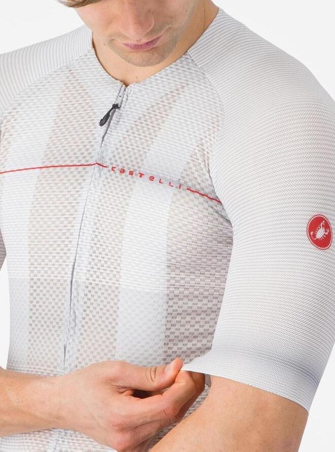 Wyścigi w Alpach w lipcu są przeznaczone mniej więcej tylko dla nielicznych, ale produkty, które wynikną z tego doświadczenia podczas tego wyścigu, są absolutnie niesamowite dla reszty z nas. Stworzyliśmy tę koszulkę na upalne dni w górach w oparciu o opinie profesjonalnych jeźdźców. Chcieli koszulki, która zapewni im chłód w upalne dni, bez konieczności poświęcania aerodynamiki. Koszulka Climber A/C ma ten sam układ szwów, co nasza koszulka Aero Race 8S, ale wykorzystuje najbardziej aerodynamiczny materiał siatkowy 3D, aby zapewnić chłód. Materiał ten jest jednocześnie miękki i elastyczny, co pozwala na dokładne i wygodne dopasowanie, niezbędne podczas długich dni w górach. A ponieważ jest przeznaczony do wielogodzinnej jazdy w górskim słońcu, z pewnością docenisz fakt, że materiał na plecach blokuje ponad 90 procent promieni UV.