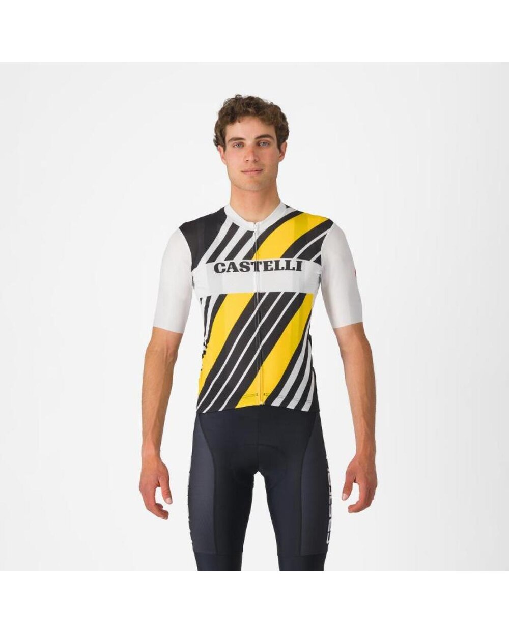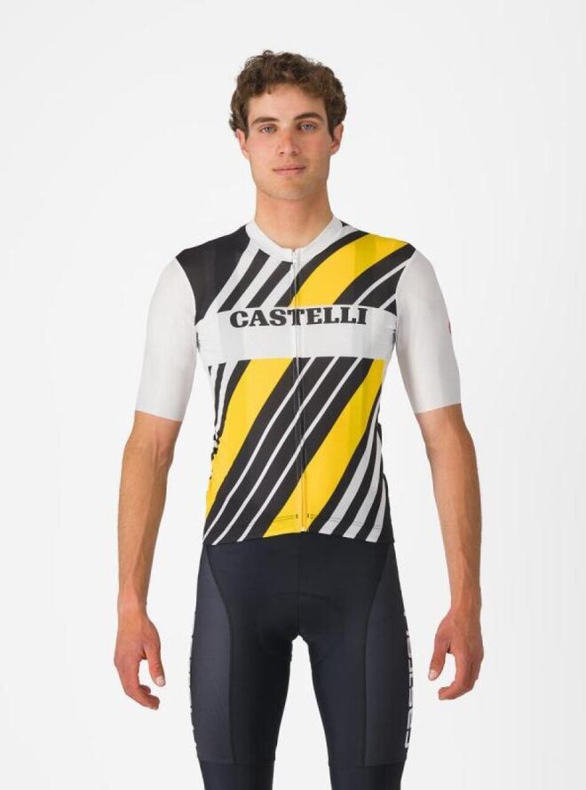 Koszulka kolarska z krótkim rękawem - HERITAGE - czarny/biały/żółty