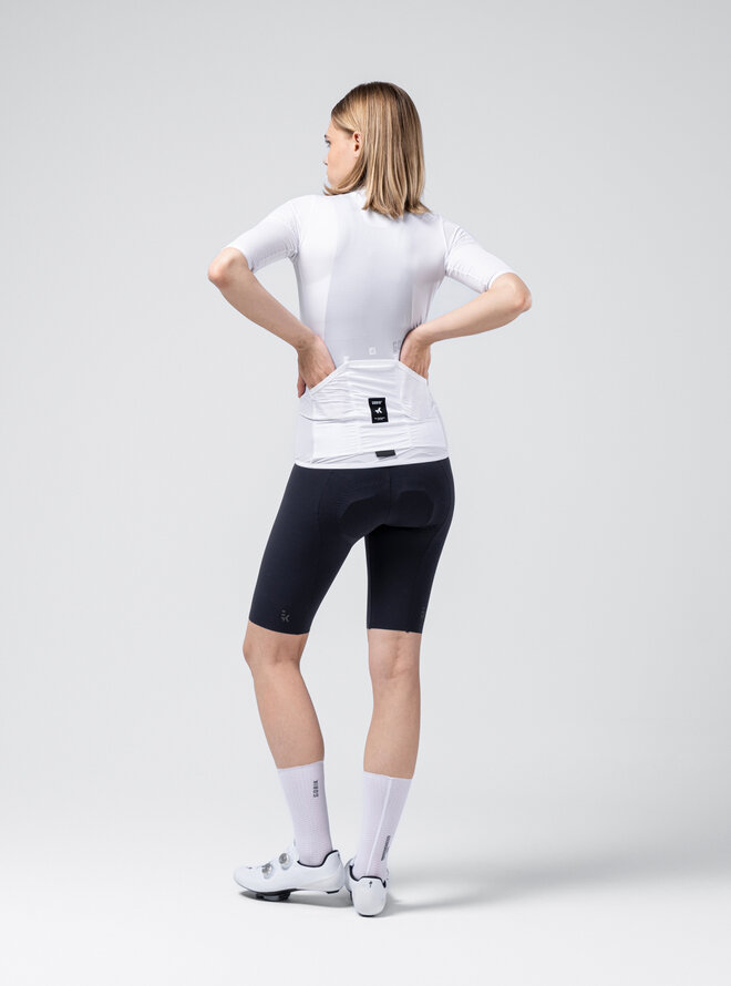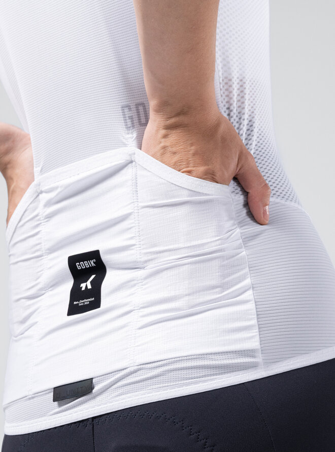 Wykonany z lekkiego, miękkiego i wysoce oddychającego materiału gwarantuje doskonałe uczucie komfortu przy każdym naciśnięciu pedałów. Mikroperforowane rękawy poprawiają wentylację, wspomagają cyrkulację powietrza i pomagają utrzymać chłód ciała nawet w ciepłe dni.