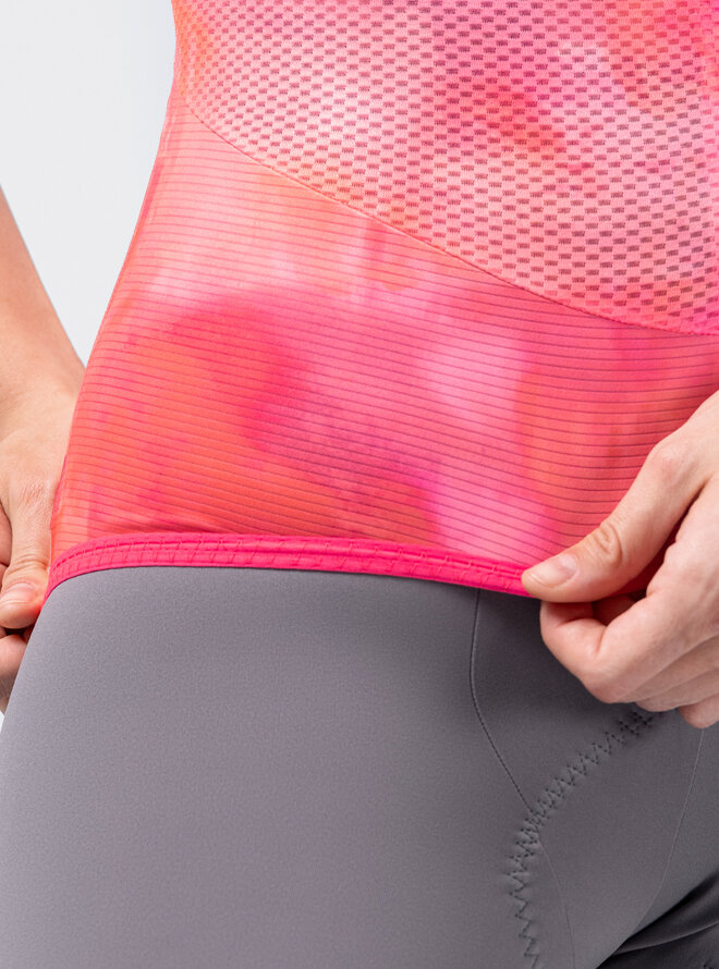 Wykonany z lekkiego, miękkiego i wysoce oddychającego materiału gwarantuje doskonałe uczucie komfortu przy każdym naciśnięciu pedałów. Mikroperforowane rękawy poprawiają wentylację, wspomagają cyrkulację powietrza i pomagają utrzymać chłód ciała nawet w ciepłe dni.