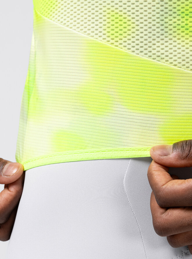 Wykonany z lekkiego, miękkiego i wysoce oddychającego materiału gwarantuje doskonałe uczucie komfortu przy każdym naciśnięciu pedałów. Mikroperforowane rękawy poprawiają wentylację, wspomagają cyrkulację powietrza i pomagają utrzymać chłód ciała nawet w ciepłe dni.