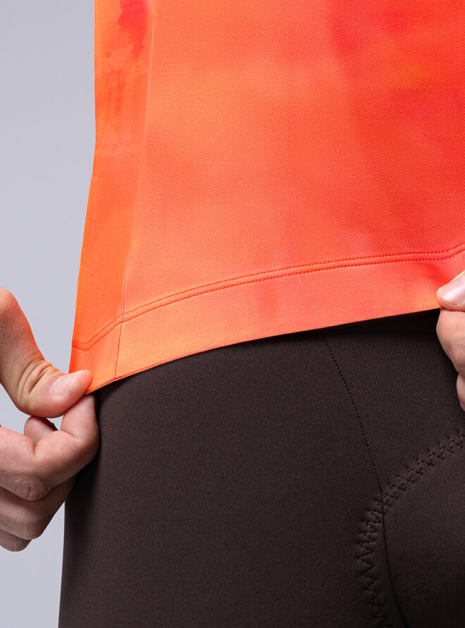 Wykonany z lekkiego, miękkiego i wysoce oddychającego materiału gwarantuje doskonały komfort przy każdym naciśnięciu pedałów. Mikroperforowane rękawy poprawiają wentylację, wspomagają cyrkulację powietrza i pomagają utrzymać chłód ciała nawet w cieplejszych warunkach.