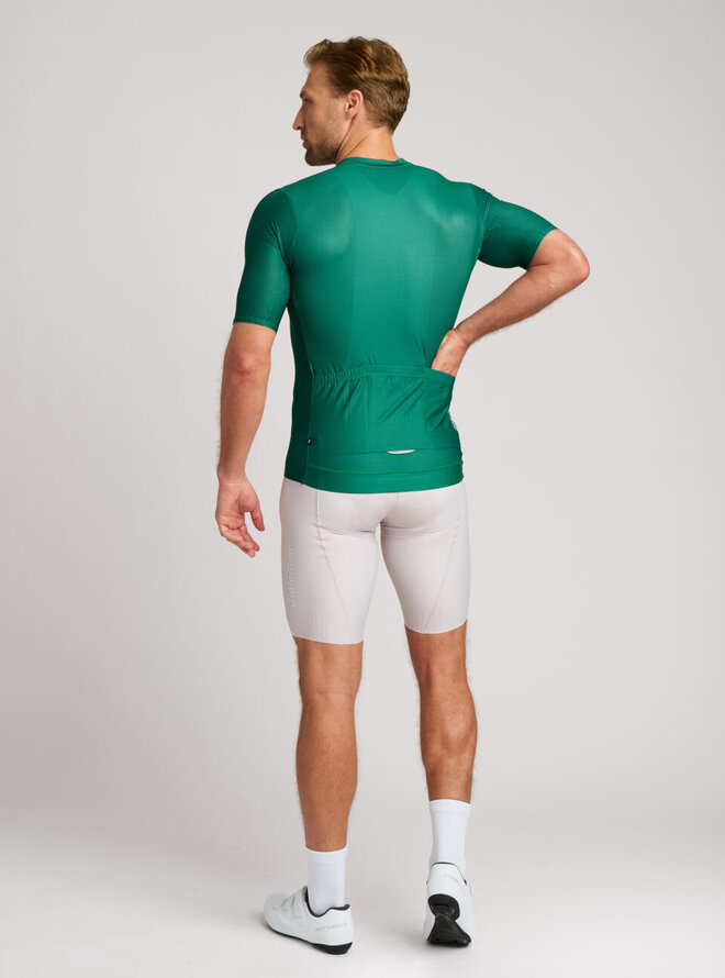 Aerolite to idealna koszulka na ciepłe i gorące dni. Jest szybkoschnący, a jego elastyczna struktura idealnie dopasowuje się do ruchu, dzięki czemu czujesz się swobodnie i nieskrępowana. Jest połączony z dwóch tkanin siatkowych, które zapewniają wysokie odprowadzanie ciepła i wilgoci. Przód koszulki zapewnia wyjątkową wentylację i maksymalne chłodzenie, natomiast tył jest nieco sztywniejszy, ale nadal wysoce oddychający i niezawodnie utrzymuje swój kształt nawet przy pełnych tylnych kieszeniach. Posiada również ukrytą kieszeń na zamek błyskawiczny, przedni zamek błyskawiczny z osłoną szyi i antypoślizgowe wykończenie z tyłu koszulki. Jest wyposażony w dyskretne odblaskowe detale i uzupełnia czysty design.