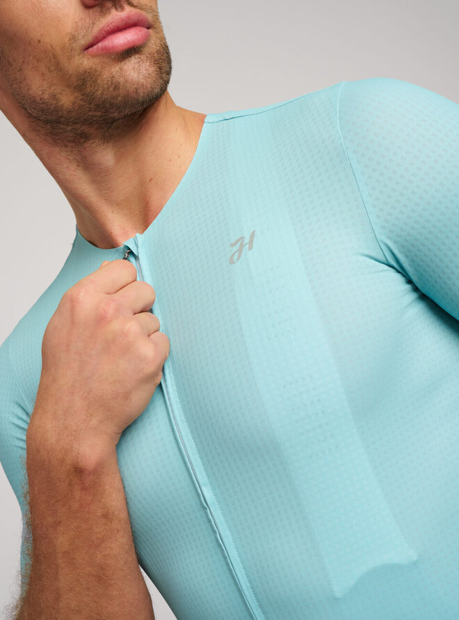 Dzięki naszemu nowemu materiałowi o oddychającej fakturze skutecznie odprowadza wilgoć nawet przy wysokich wyczynach. Dopasowuje się do sylwetki, mocno trzyma kształt i niweluje mankamenty. Posiada ulepszony krój kołnierzyka i zamek błyskawiczny z ochroną szyi, trzy tylne kieszenie z ukrytą kieszenią na suwak oraz antypoślizgowe wykończenie z tyłu koszulki. Minimalistyczny design podkreśla ponadczasowość koszulki.