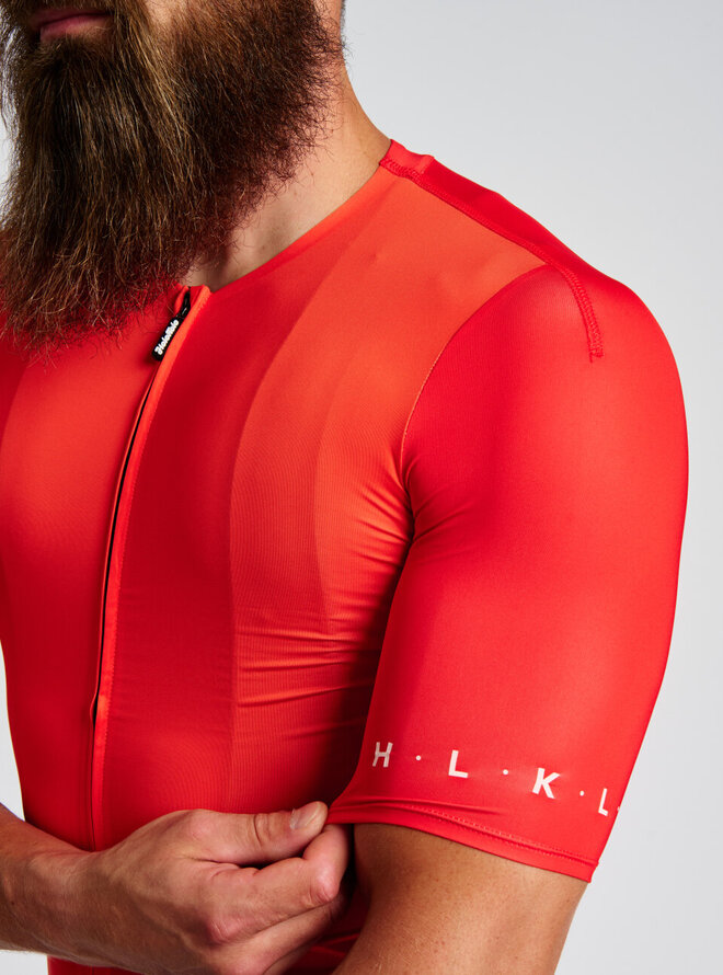 Vďaka pružnému materiálu dokonale obopnú ruky aj keď ich máte veľmi chudé alebo ak ste pred sezónou náhodou spravili nejaké kliky navyše, je to v poriadku. V každom prípade ich perfektne obalia. Na spodnej strane v zadnej časti je pogumovaná manžeta s reflexnými prvkami, ktorá drží aj pri aero pozícii dres na svojom mieste a neodkrýva chrbát, i keď pri tomto druhu dresu sa ráta, že budete mať pod ním nohavice na traky. Celkovo dres sedí na tele veľmi dobre a ani po dlhšom čase nikde neomína a v podstate som ho ani nevnímal, čo je dobrá vlastnosť. Pri väčších rýchlostiach nič netrepoce, čo naznačuje, že dres je určený primárne na cestnú cyklistiku. Tak, že len natiahnuť na seba ako druhú kožu a tradá vyraziť na cesty.