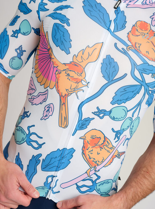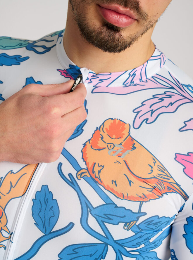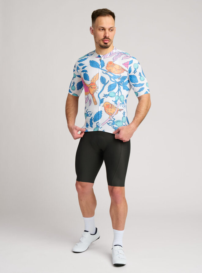 Wzbogać swoją codzienną jazdę oryginalną ilustracją. Ta letnia koszulka rowerowa dla mężczyzn wprawi Cię w dobry nastrój i pozwoli cieszyć się dniem spędzonym na rowerze.