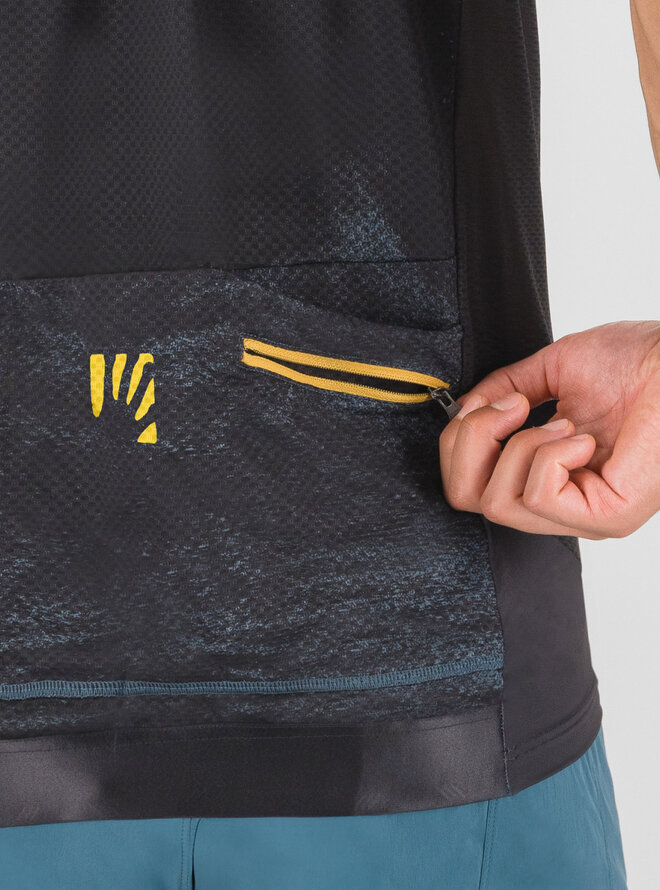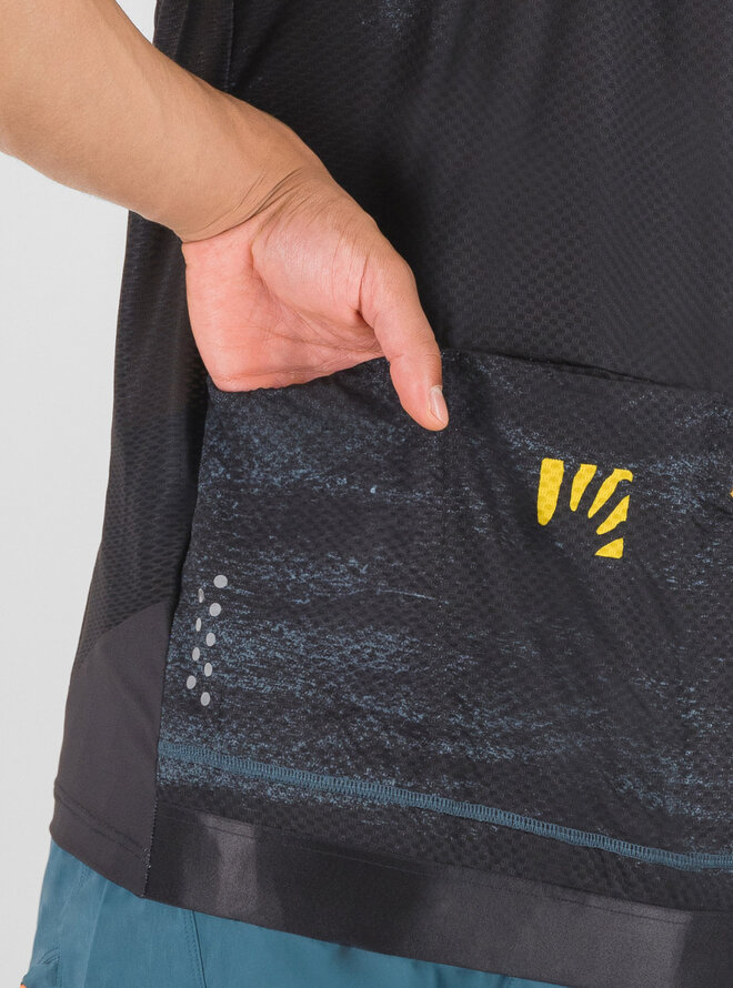 Letnia koszulka MTB Karpos Green Fire wykonana jest z pary funkcjonalnych materiałów, które zapewniają optymalny komfort nawet podczas całodniowej jazdy. Z przodu znajduje się miękki, elastyczny materiał, który zapewnia dobre dopasowanie. Lepsze odprowadzanie potu ze skóry (nawet podczas noszenia plecaka) zapewnia perforowany materiał po bokach, rękawach i plecach. Aby pomieścić wszystkie niezbędne rzeczy, koszulka wyposażona jest w 3 pojemne kieszenie i mniejszą kieszeń wewnętrzną.