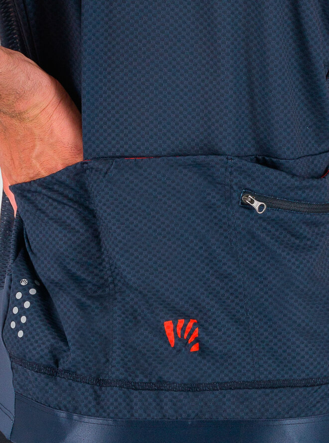 Letnia koszulka MTB Karpos Green Fire wykonana jest z pary funkcjonalnych materiałów, które zapewniają optymalny komfort nawet podczas całodniowej jazdy. Z przodu znajduje się miękki, elastyczny materiał, który zapewnia dobre dopasowanie. Lepsze odprowadzanie potu ze skóry (nawet podczas noszenia plecaka) zapewnia perforowany materiał po bokach, rękawach i plecach. Aby pomieścić wszystkie niezbędne rzeczy, koszulka wyposażona jest w 3 pojemne kieszenie i mniejszą kieszeń wewnętrzną.