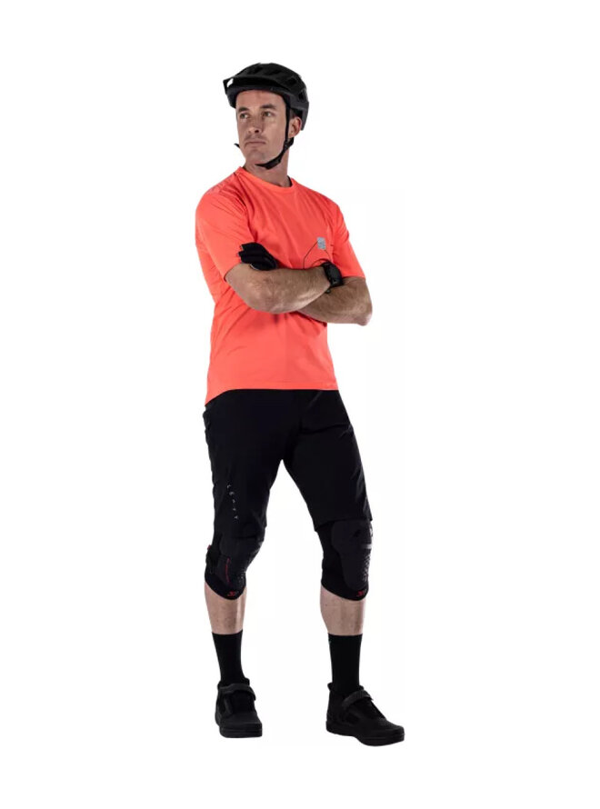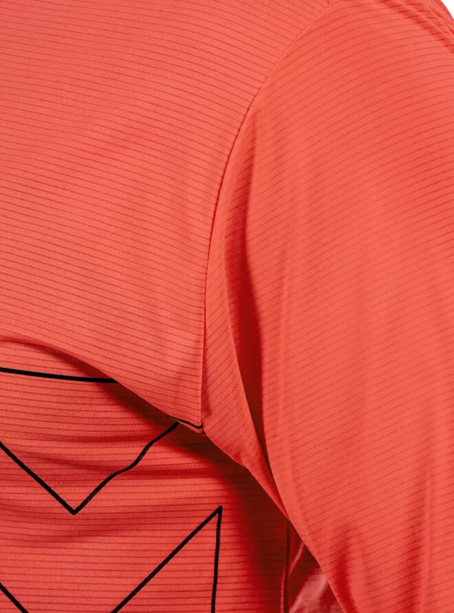 Tkanina z siatki X-przepływu zapewnia wyjątkową wentylację, niską wagę i usuwanie wilgoci dzięki technologii wilgotnościowej. Ciasne elastyczne cięcie gwarantuje maksymalną wygodę noszenia.