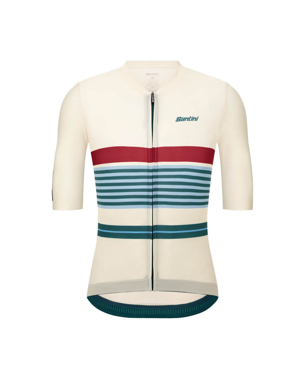 SANTINI Bengal Evo to nowoczesna ewolucja kultowej koszulki w paski - lekka, aerodynamiczna i maksymalnie funkcjonalna. Lekki, techniczny materiał o dopasowanym kroju slim i konstrukcji unisex doskonale dopasowuje się do ciała, nie krępując ruchów.