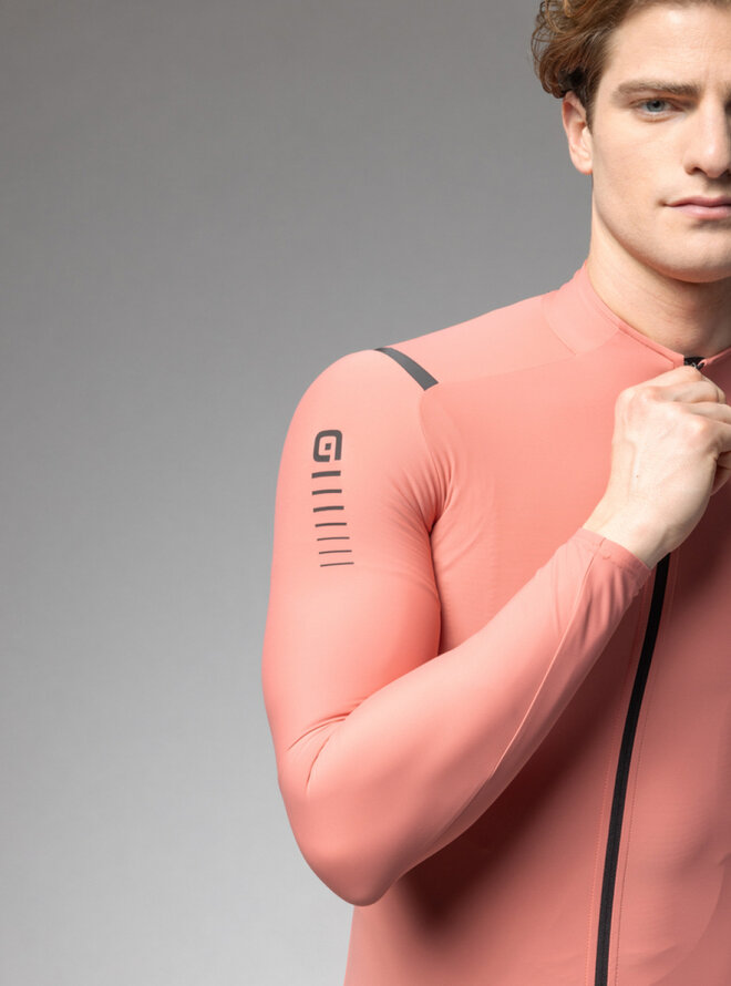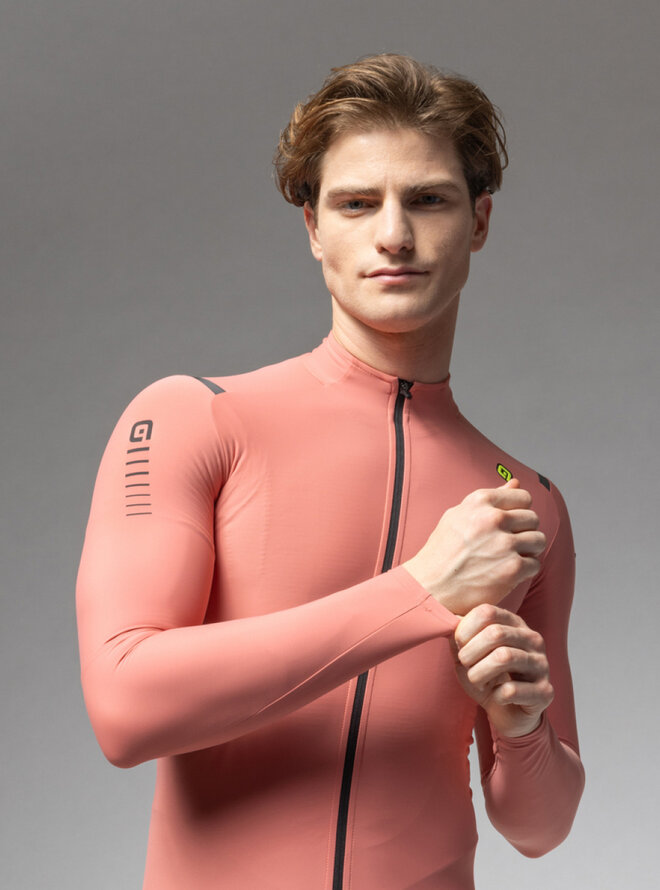 Zimowa koszulka kolarska z długim rękawem - WARM RACE - różowy