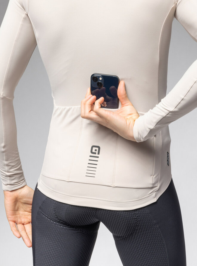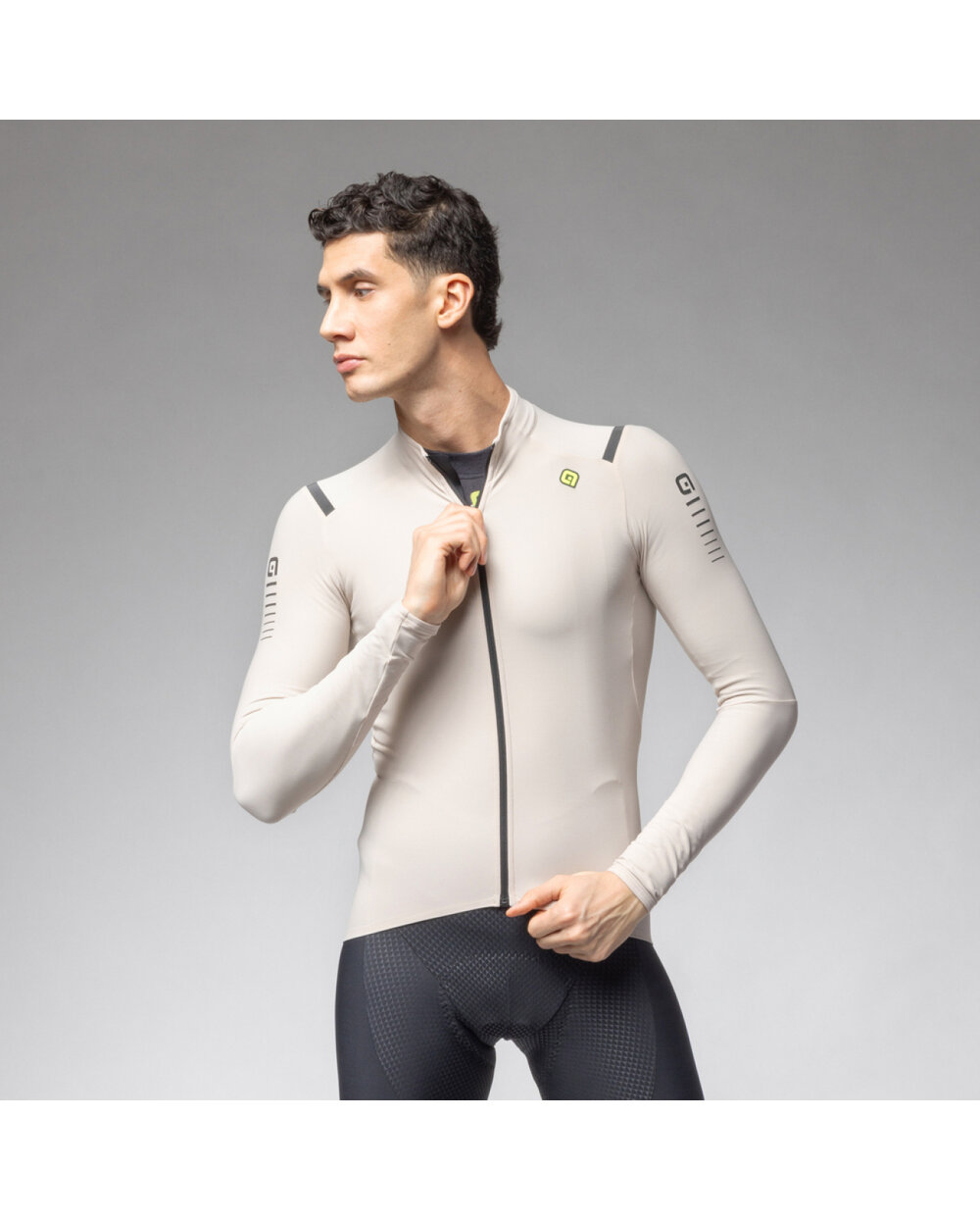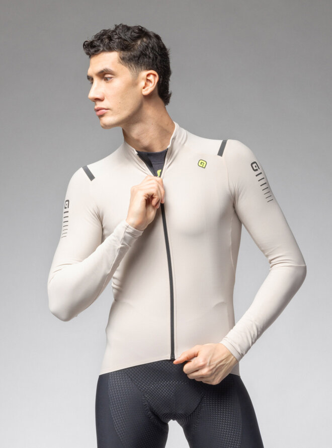 Zimowa koszulka kolarska z długim rękawem - WARM RACE - kość słoniowa