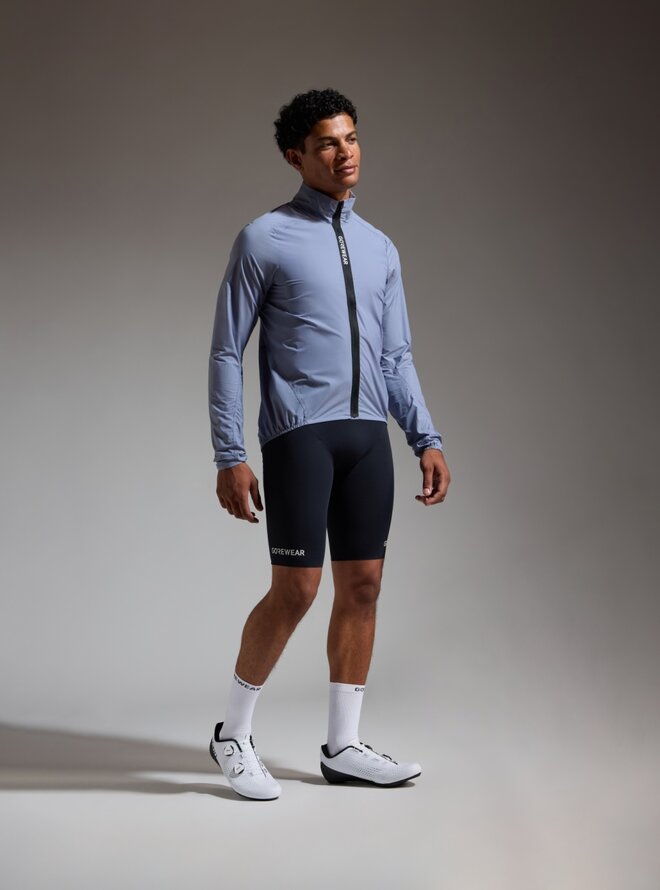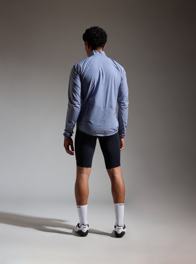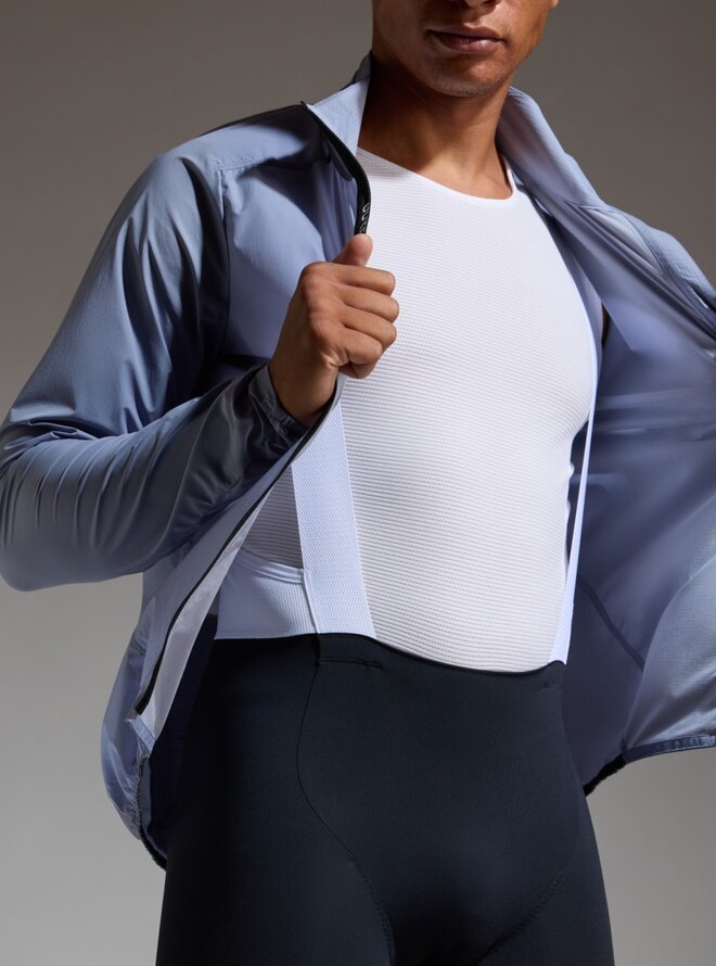 Wiatrówka wyposażona jest w dwie przednie kieszenie na zamek do bezpiecznego przechowywania drobiazgów oraz dolny ściągacz ze sznurkiem do indywidualnej regulacji. Elementy odblaskowe na łokciach, ramionach i w dolnej części pleców zwiększają widoczność w słabych warunkach oświetleniowych.