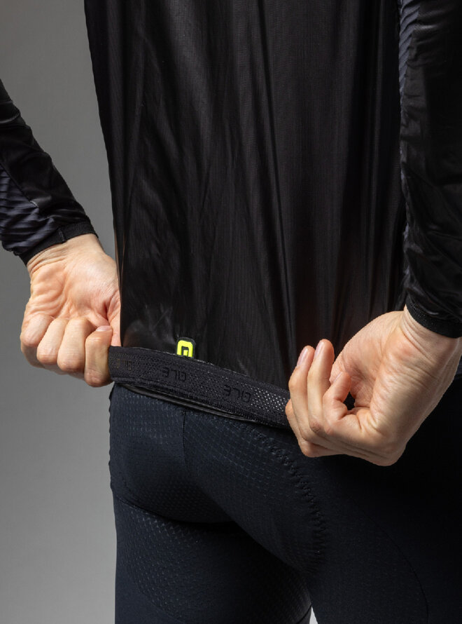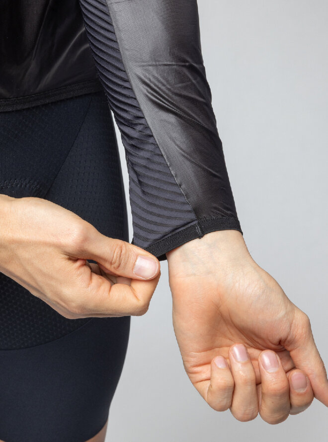 - Elastyczna silikonowa opaska na dole i na rękawach utrzymuje kurtkę na miejscu.
