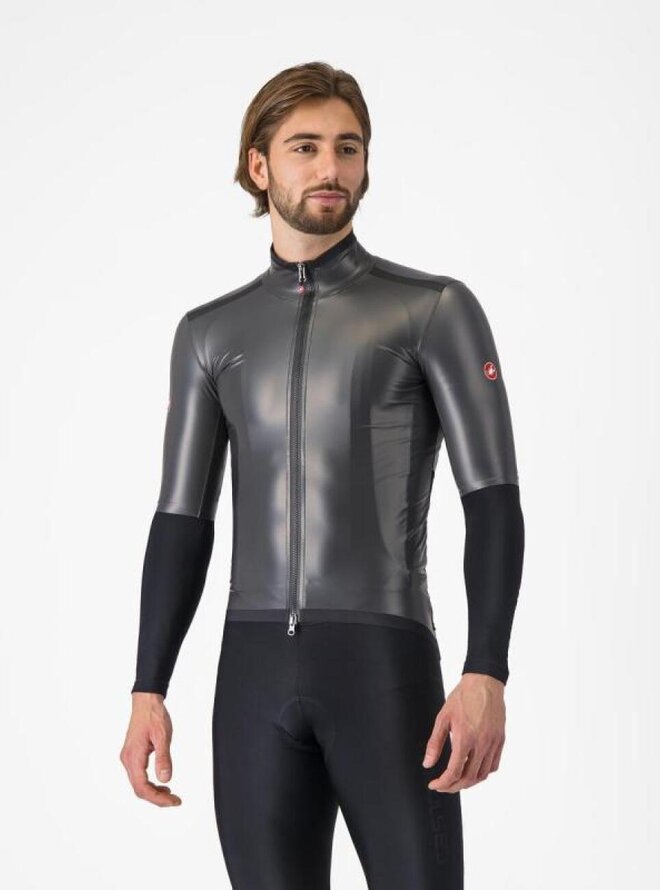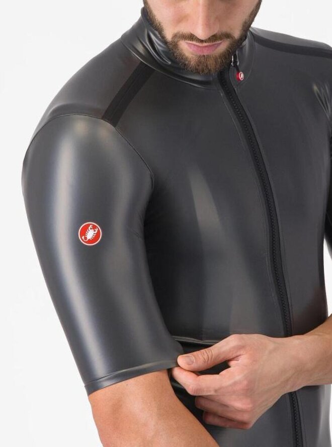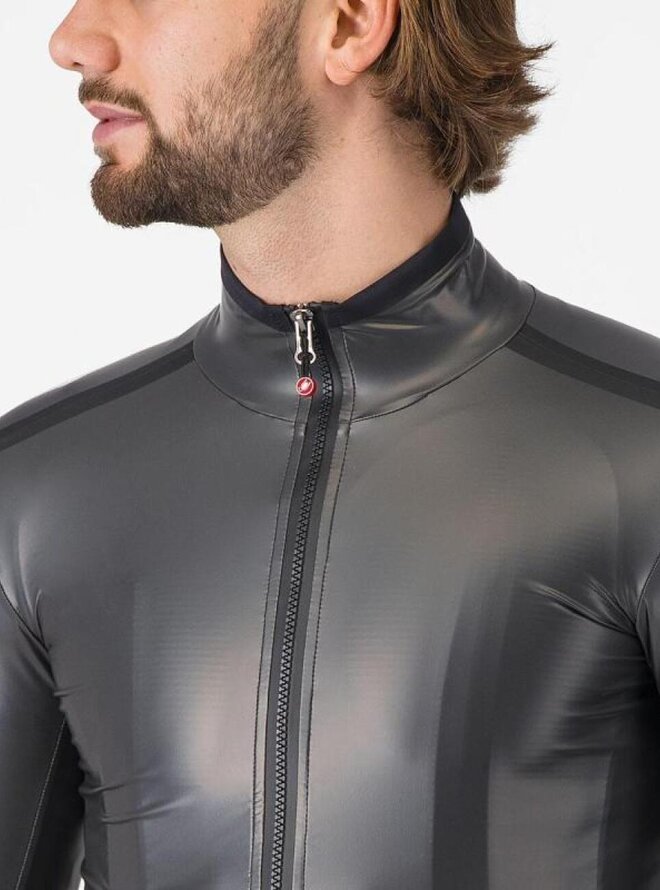 Nowa generacja odzieży wyścigowej na niepogodę. Teraz z jeszcze lepszą ochroną i większą aerodynamiką.Ekskluzywny materiał Castelli z mikroporowatą hydrofilową membraną poliuretanową