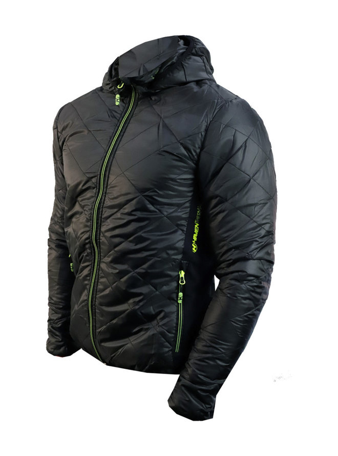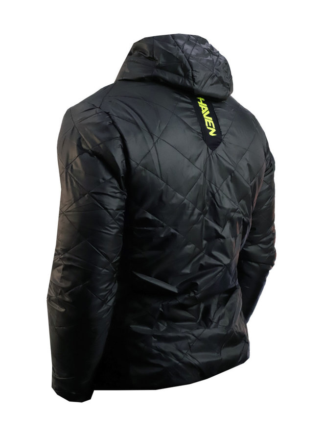 Kurtka unisex wywodząca się bezpośrednio z kamizelki Thermal, o doskonałych właściwościach termicznych i oddychalności wymaganej podczas uprawiania sportu. Boczne oddychające elastyczne panele z wewnętrznymi kieszeniami idealnie dopasowują się do ciała i odprowadzają pot. Wysokiej jakości wewnętrzna izolacja poliestrowa. Duża liczba kieszeni. Sznurek w pasie. Odpinany kaptur. 100% poliester. Wszystkie tekstylia Haven należy prać w temperaturze 30°C bez zmiękczacza w specjalnych detergentach przeznaczonych do odzieży sportowej, które nie niszczą delikatnych włókien. Zalecenia.Szczegóły