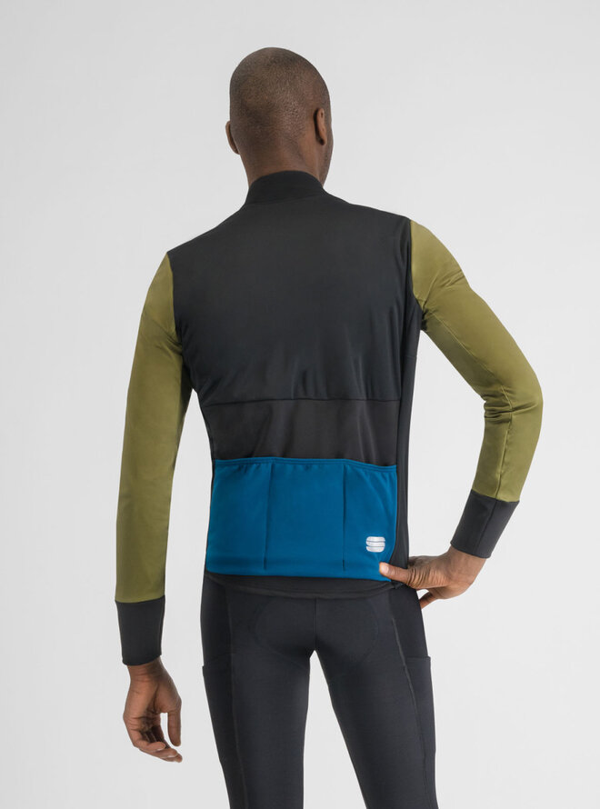 Kolarska ocieplana kurtka - SUPERGIARA - niebieski/zielony/czarny