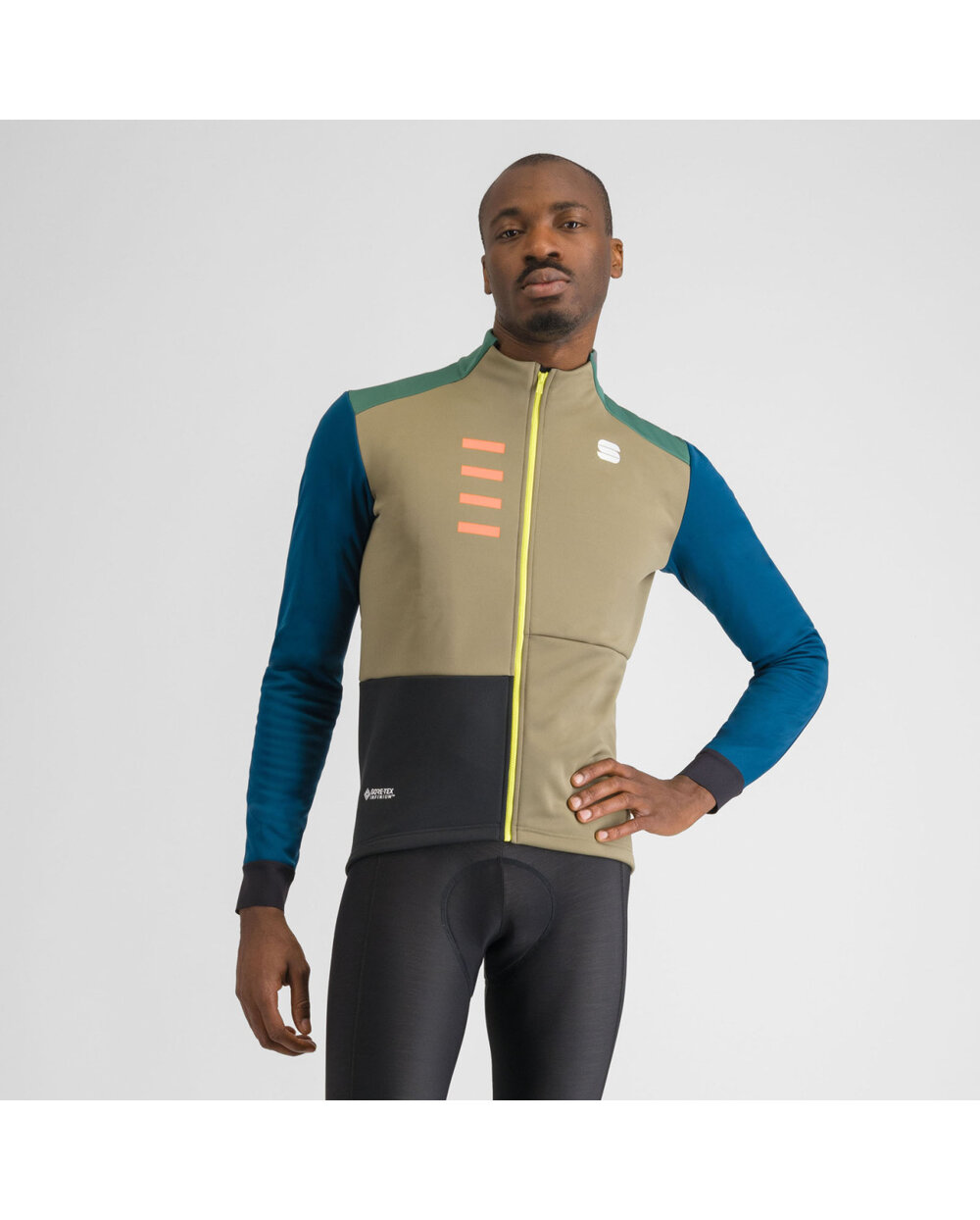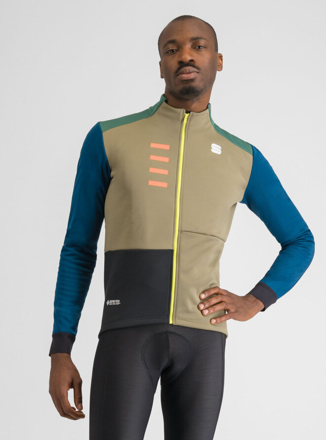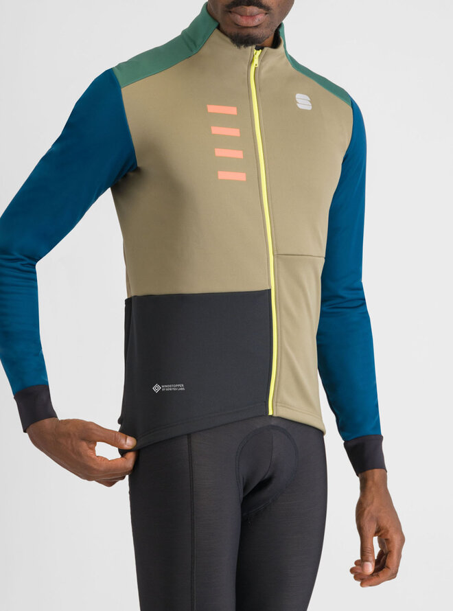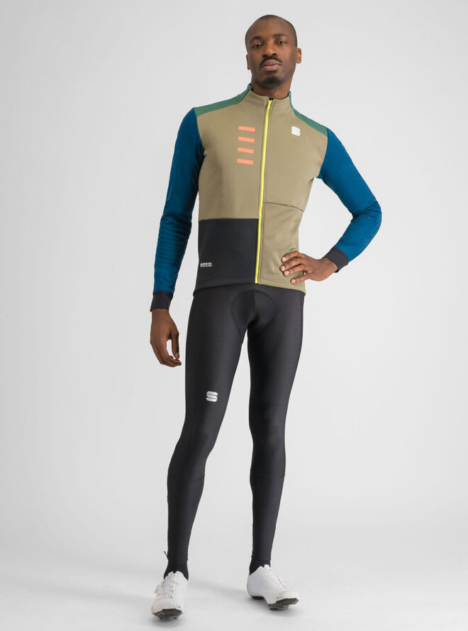 - na przodzie znajduje się materiał GORE-TEX® Infinium™, który znany jest z doskonałej odporności na wiatr i zimno. Materiał ten zapewnia ciepło i suchość nawet przy silnym wietrze i niskich temperaturach. Pomimo odporności na wiatr, materiał jest oddychający, co oznacza, że pozwala na ucieczkę nadmiaru wilgoci i ciepła, zapobiegając w ten sposób przegrzaniu i utrzymując optymalną temperaturę ciała. Jest także lekka i elastyczna, nie krępuje ruchów i zapewnia maksymalny komfort podczas jazdy.