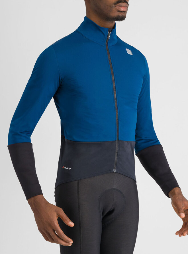 Zimowa kurtka rowerowaTotal Comfort przeznaczona jest dla miłośników jazdy na rowerze, których nie odstrasza od treningu nawet zimno, deszcz czy śnieg. Powierzchnia kurtki wykonana jest z wodoodpornego i wiatroszczelnego materiału Polartec® Neoshell®, natomiast dolna warstwa materiału Polartec® Alpha® Direct zapewnia doskonałą izolację termiczną i wysoki poziom oddychalności. Dzięki temu zapewnione jest uczucie suchości, nawet podczas jazdy z dużą prędkością. Do przechowywania wszystkich niezbędnych rzeczy służą aż cztery kieszenie. Dolna część kurtki jest pokryta wodoodporną powłoką DWR, która chroni przed zabrudzeniem spowodowanym błotem lub kałużami.