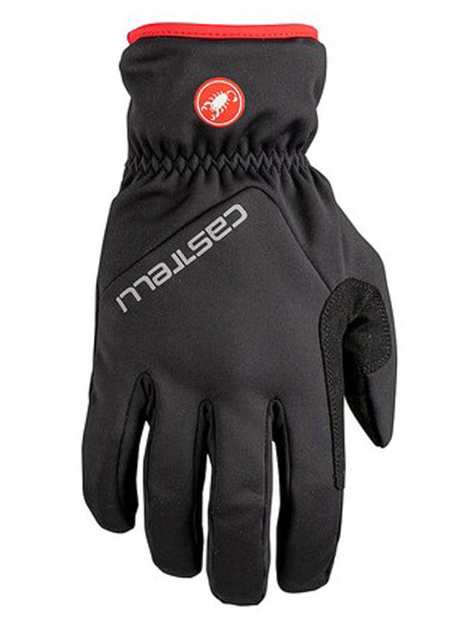 Niezbędne zimowe rękawice Castelli zapewniają ciepło, dobry chwyt i dodatkowy komfort. Łatwo się je ściąga i mają syntetyczną zamszową dłoń z silikonowym uchwytem.