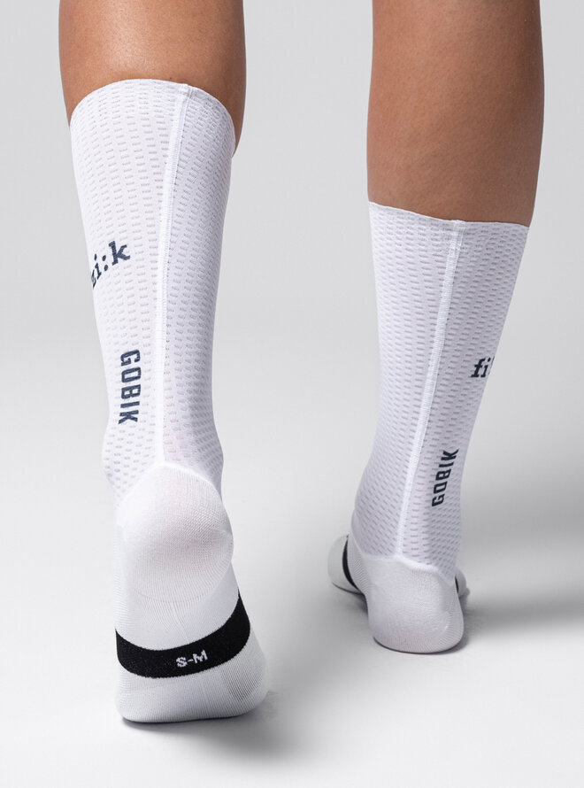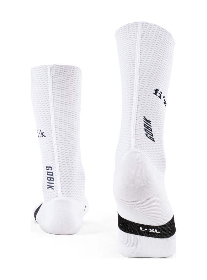 Skarpety aerodynamiczne przeznaczone do zawodów i intensywnych treningów w ekstremalnych temperaturach, gdzie liczy się każdy szczegół. Dzięki konstrukcji technicznej przetestowanej w tunelach aerodynamicznych przez zespoły WorldTour łączą perforowaną górną część korpusu, która optymalizuje wentylację, z wydłużoną wysokością 22 cm zgodnie ze standardami UCI. Wewnętrzny silikonowy nadruk w górnej części zapewnia idealne dopasowanie bez konieczności obszywania, tworząc efekt „drugiej skóry”, który poprawia aerodynamikę i komfort. Dolna część wykonana jest z przędzy Fulgar® Q-SKIN® z jonami srebra, zapewniającej właściwości bakteriostatyczne, kontrolujące nieprzyjemny zapach i wspomagające odprowadzanie potu, utrzymując stopy w chłodzie i suchości nawet w najbardziej wymagających warunkach. Dzięki wysokiej elastyczności, anatomicznemu dopasowaniu z asymetrycznymi palcami oraz wzmocnieniom na pięcie i palcach zapewniają najwyższy komfort przez cały dzień. Techniczna, lekka i wysoce funkcjonalna odzież dla rowerzystów poszukujących bezkompromisowej wydajności i precyzji. Zaawansowana konstrukcja aerodynamiczna i lekkość. Pinky wykonany z przędzy Fulgar® Q-SKIN®. Testowane w tunelach aerodynamicznych przez zespoły WorldTour. Wysokość 22 cm (rozmiar L-XL). Perforowana górna część korpusu zapewnia dodatkową wentylację. Silikon antypoślizgowy na górnym końcu. Niskoprofilowe szwy. Anatomiczne, asymetryczne osłony palców. System wzmocnień na pięcie i palcach.Szczegóły
