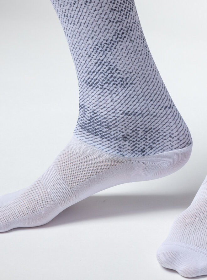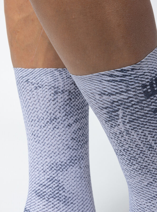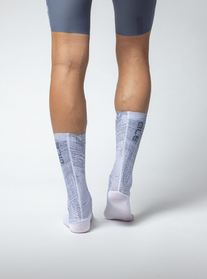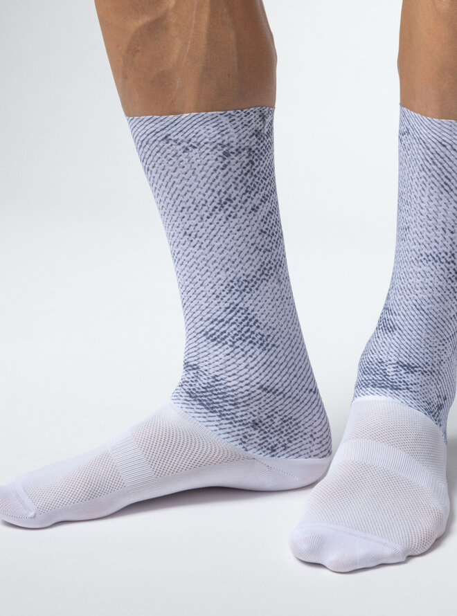 Aerodynamiczne skarpetki TYPHOON to idealny wybór, jeśli chcesz osiągnąć swój najlepszy czas. Górna część o wysokości 18 cm wykonana jest z materiału Aero Cell o sześciokątnej strukturze, która zapewnia minimalny opór powietrza. Dół wykończony technologią Raw Cut z systemem stabilizującym Grip Dots, który utrzymuje skarpetki stabilnie na miejscu. Dolna część wykonana jest z bardzo oddychającego materiału, który wspomaga wentylację i odprowadzanie wilgoci.