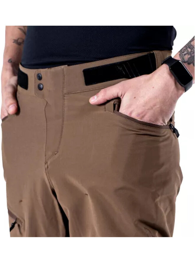 Wygodne spodenki enduro na co dzień, które spełnią wszystkie Twoje oczekiwaniaWykonany z lekkiego, rozciągliwego materiału z wykończeniem typu dirt, water i spot, dobrze komponuje się z lżejszymi koszulkami rowerowymi, takimi jak Leatt MTB Enduro 3.0 lub Trail 2.0. Dostosowane do wstępnie zakrzywionych kolan pozwalają na chodzenie przez cały dzień, z ochraniaczami kolan lub bez. Kieszeń na udzie, dwie kieszenie na biodrach i tylna kieszeń na telefon umożliwiają noszenie dowolnego praktycznego ładunku, jakiego potrzebujesz.