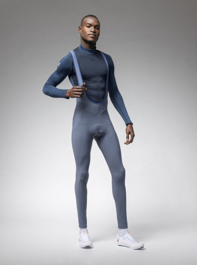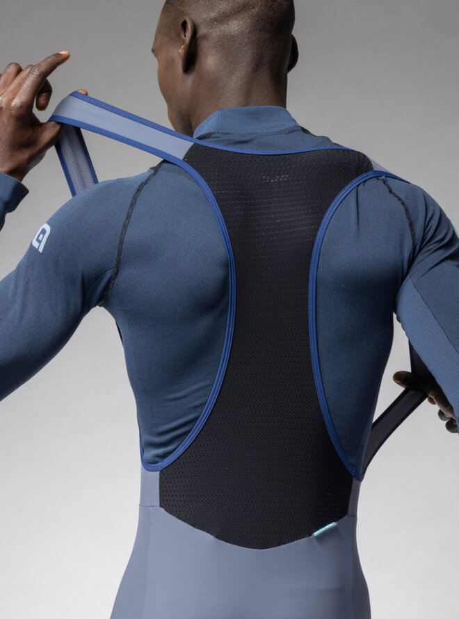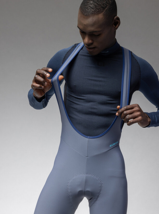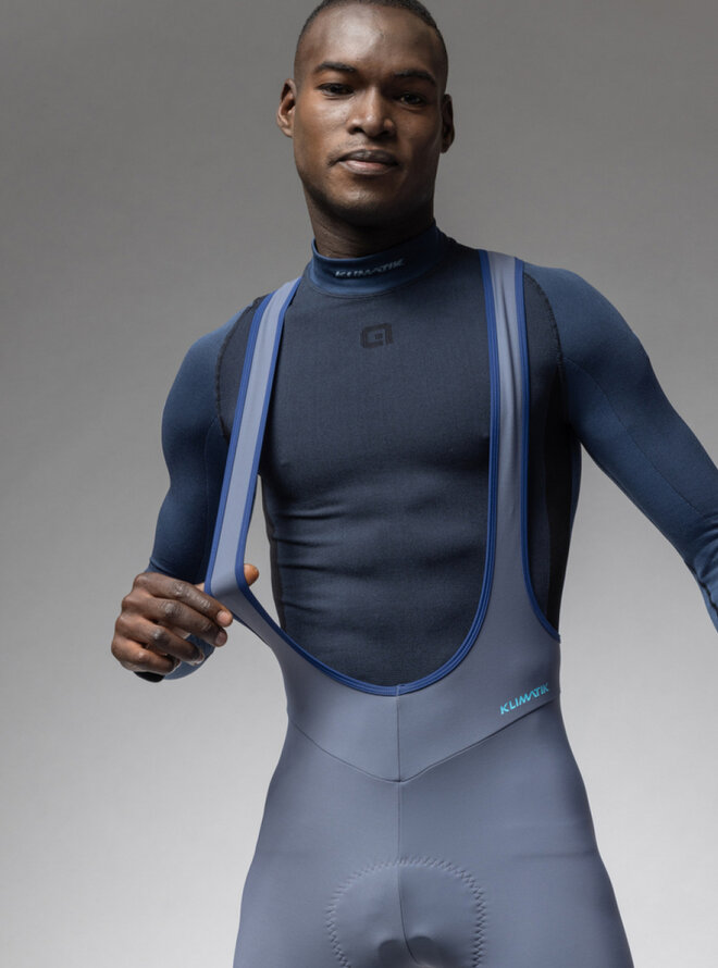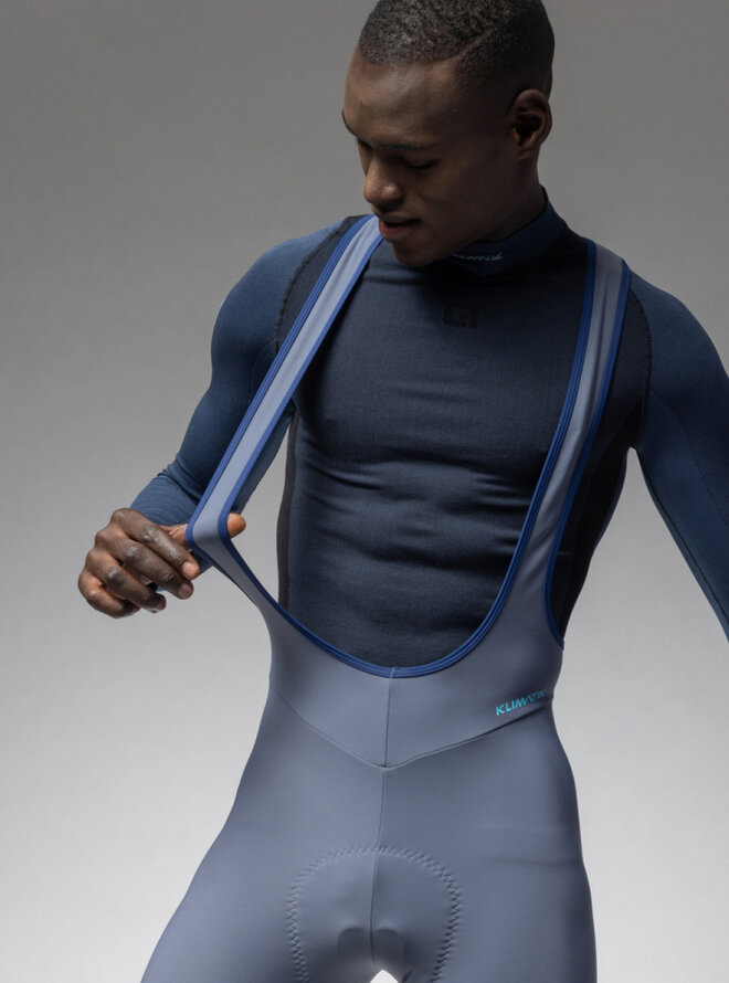 Długie spodnie kolarskie z szelkami - KLIMATIK K-ATMO - jasnoniebieski