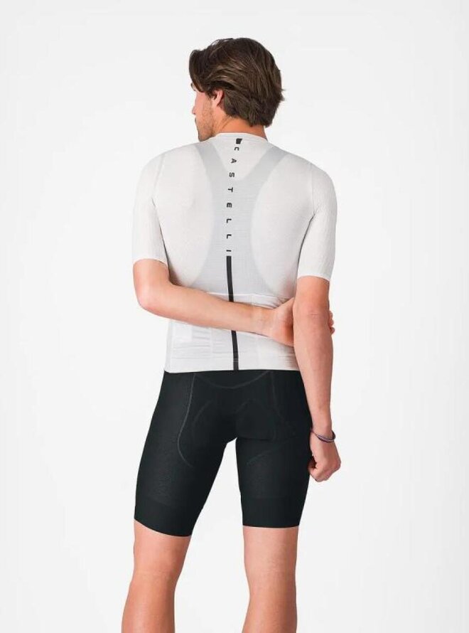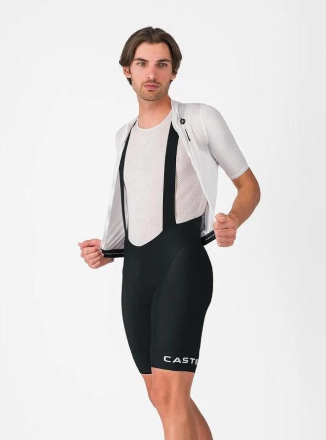 Opracowaliśmy te spodenki, aby zaoferować profesjonalistom maksimum technologii z naszej najwyższej linii w przystępnej cenie. To świetne, wygodne spodenki wyczynowe, które poradzą sobie nawet podczas weekendowych wyścigów. Większa część spodni wykonana jest z teksturowanego materiału Vortex. Zastosowaliśmy szerokie, elastyczne zakończenie nogawek ze zintegrowanym silikonem, dzięki czemu spodnie trzymają się pewnie i wygodnie. Wkładka KISS Air2 jest prawie tak wygodna jak nasza topowa wkładka, ale za znacznie lepszą cenę. Udoskonaliliśmy ramiączka: tył wykonany jest z siateczki zapewniającej przewiewność, przednia część ramiączek wykonana jest z lekkiego, elastycznego materiału, dzięki czemu można je nosić przez cały dzień. Nieuchwytnym elementem, który najbardziej docenisz, jest możliwość połączenia go w idealnie dopasowany krój, dzięki zespołowi programistów Castelli.