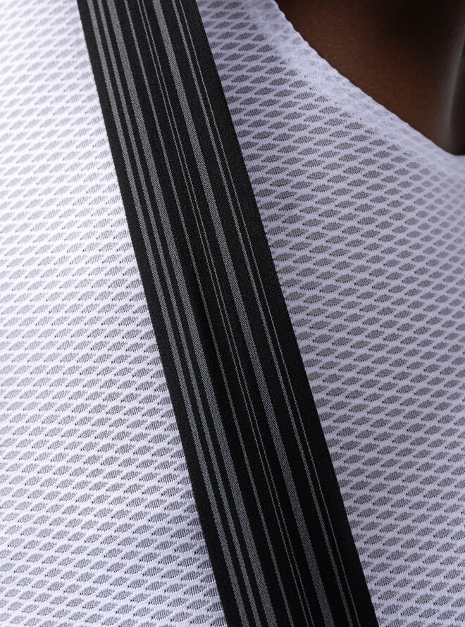Główny materiał został całkowicie przeprojektowany - jest mniej przezroczysty, bardziej stabilny i bardziej oddychający dzięki okrągłej strukturze dzianiny, która zapewnia również większą elastyczność i trwałość. Rezultatem jest lżejsza odzież, zapewniająca lepsze poczucie komfortu już od pierwszego założenia, która precyzyjnie dopasowuje się do ciała, nie ograniczając podparcia ani swobody ruchów.