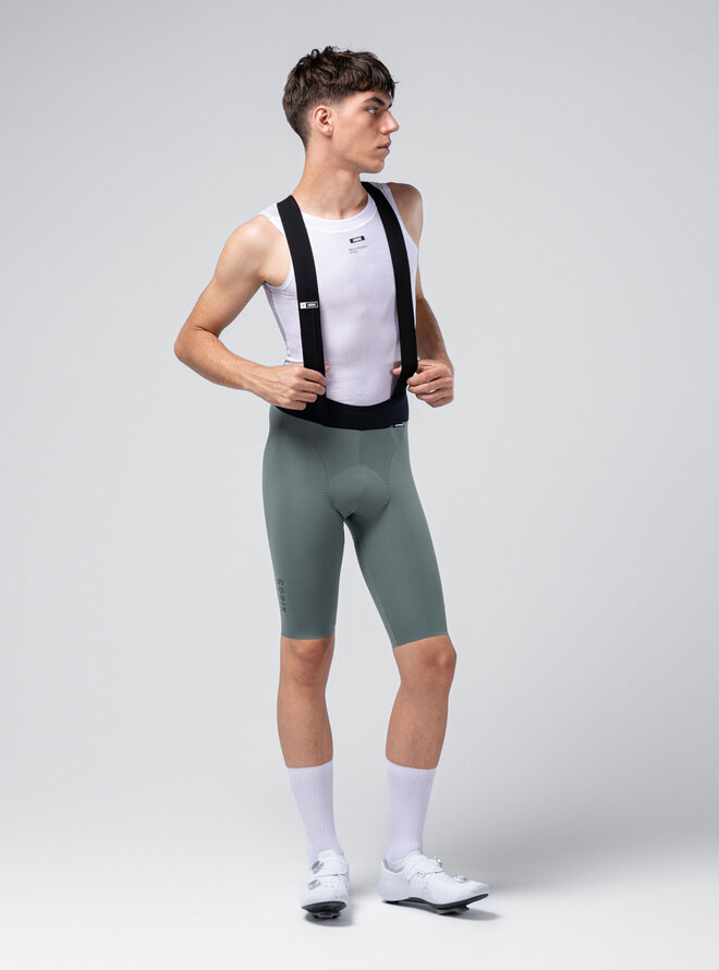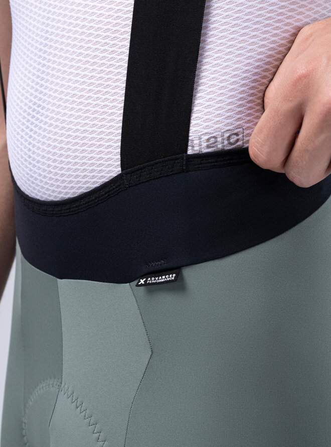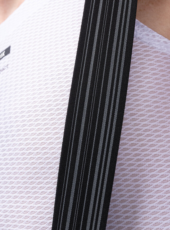 Ergonomiczne szelki o czystym (bezszwowym) kroju i przedłużonych ramiączkach zawierają włókno grafenowe, które wspomaga termoregulację, neutralizuje nieprzyjemne zapachy i zapobiega zatrzymywaniu wilgoci. Spodnie wykończone bez szwów zapewniają precyzyjne i łatwe dopasowanie, eliminują punkty nacisku i dają poczucie drugiej skóry nawet na wymagających trasach.