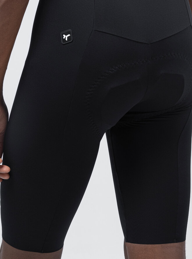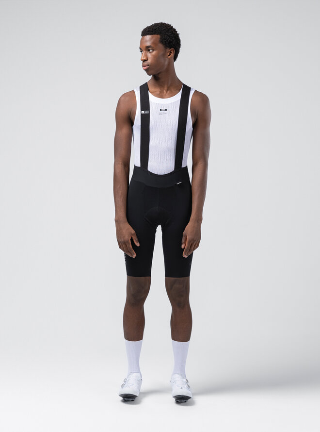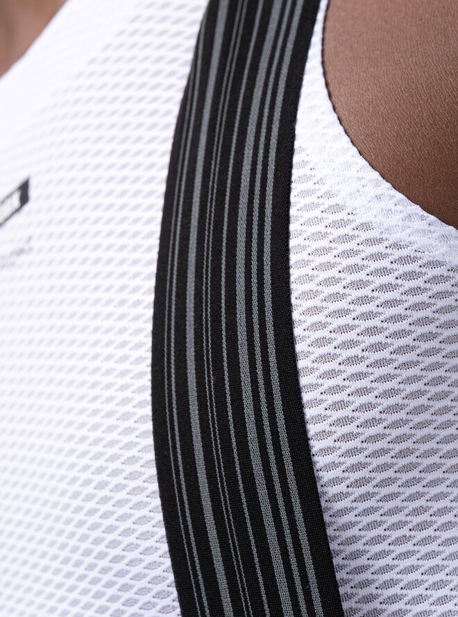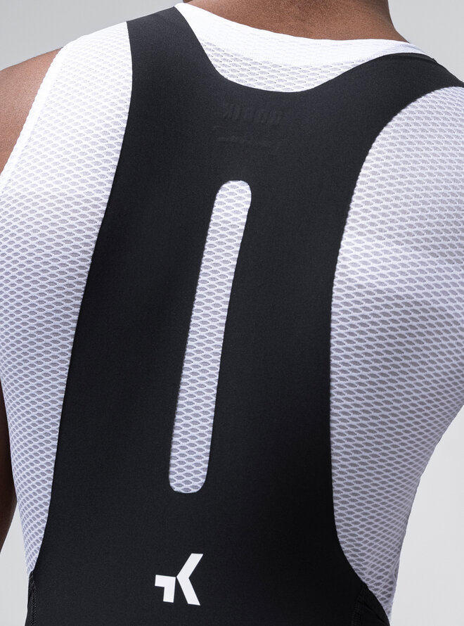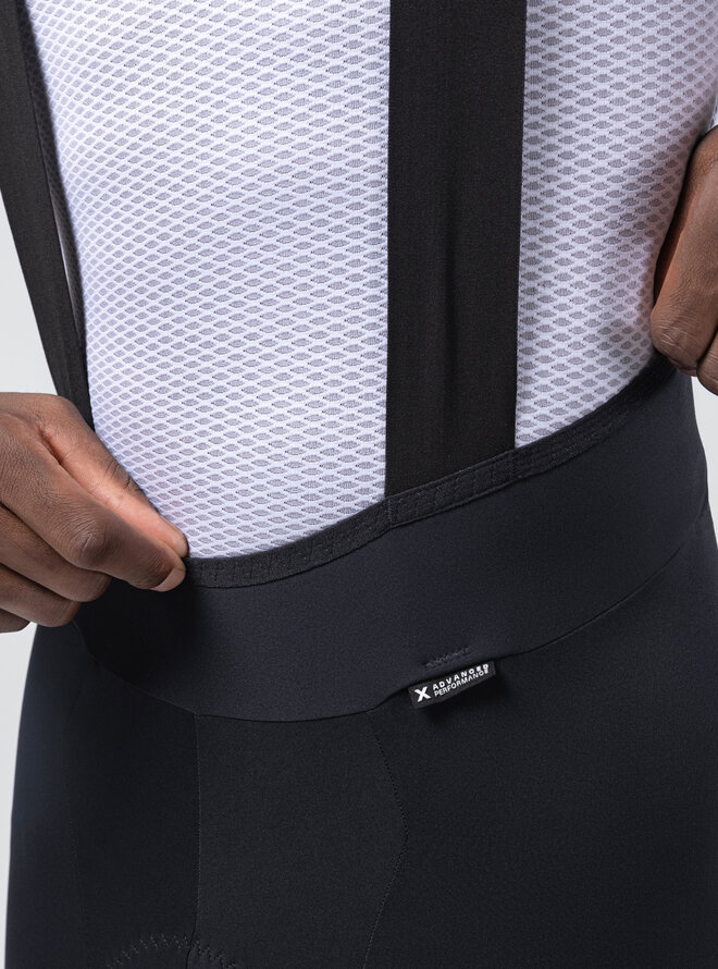 Ergonomiczne szelki o czystym (bezszwowym) kroju i przedłużonych ramiączkach zawierają włókno grafenowe, które wspomaga termoregulację, neutralizuje nieprzyjemne zapachy i zapobiega zatrzymywaniu wilgoci. Spodnie wykończone bez szwów zapewniają precyzyjne i łatwe dopasowanie, eliminują punkty nacisku i dają poczucie drugiej skóry nawet na wymagających trasach.