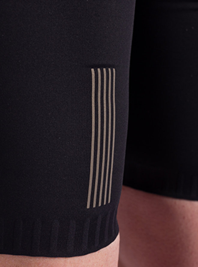 Spodenki SANTINI Plush z szelkami to idealne rozwiązanie do wygodnej i wydajnej jazdy na średnich i długich trasach. Dzięki włoskiemu materiałowi Premium Fit, który jest niezwykle rozciągliwy, wysoce kompresyjny i miękki w dotyku, model zapewni Ci maksymalny komfort. Wykonane z pochodzącego z recyklingu poliamidu z matowym wykończeniem, spodenki wyglądają czysto i elegancko. Bezszwowe, elastyczne szelki z przodu przylegają do ciała, a niezwykle lekka i rozciągliwa siateczka z tyłu zapewnia doskonałą wentylację. Spodenki posiadają również wewnętrzne antypoślizgowe uchwyty na nogawkach, które utrzymują je na miejscu podczas pedałowania. Wkładka GITevo z żelowym rdzeniem jest wszyta w spodenki, aby równomiernie i stopniowo absorbować wstrząsy. Dla lepszej widoczności spodenki posiadają odblaskowe detale z tyłu ud.