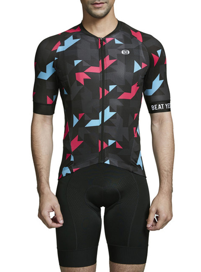 Koszulka kolarska z krótkim rękawem - AUTUMN COLORS - czerwony/niebieski/czarny