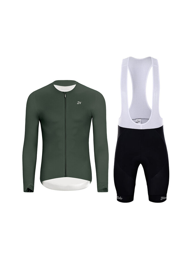 Koszulka kolarska z długim rękawem i spodnie - ELEVATE - czarny/zielony
